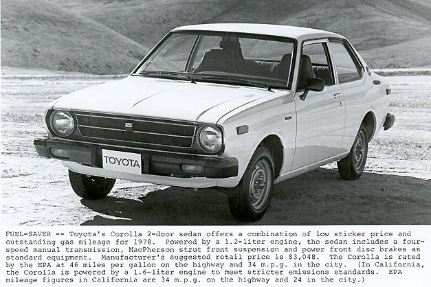 Mai szemmel fura, hogy 1974-ben újabb modellváltás és a teljesen új harmadik nemzedék következett, már 4 méter feletti hosszall, programozott gyűrődőzónákkal, így új biztonsági sztenderdet hozva. Ebben az évben érték utol a Corolla eladásai a Volkswagen Bogárét.