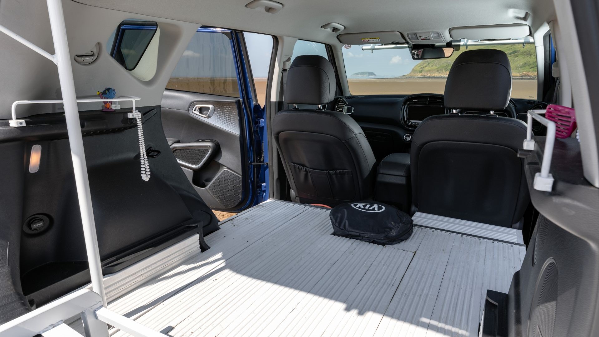 Hiába hordja tetején a szörfdeszkákat, mégis tárolóhellyé alakították a hátsó traktust. Vízálló anyaggal borított ülésből csak kettő van, mögé egy sík padló került az egyéb holmiknak. A vizes ruhák egy kihajtható rúdon száradhatnak, a naplementét egy szintén ki-be hajtható padról lehet megcsodálni. A modell biztosan nem kerül gyártásba, de marketingcélokra tökéletes, és akár olyan fiatalok érdeklődését is felkeltheti a modell iránt, akiket amúgy hidegen hagy ez a kategória.