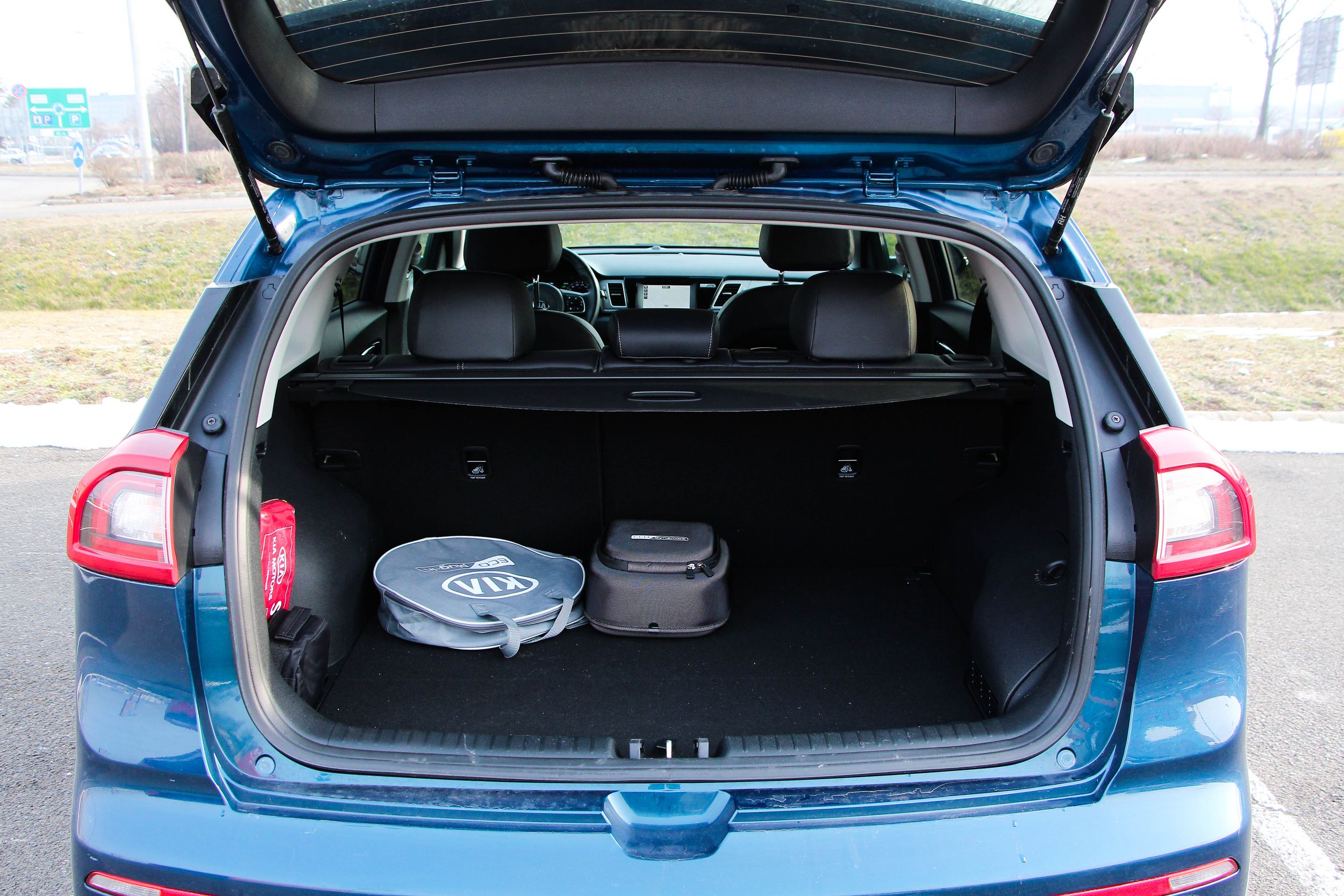 Az autó tengelytávolsága egyébként 2,7 méter, míg maga a karosszéria 4,36 méter hosszú. Ezek a méretek tágas utasteret ígérnek, és nem is kell csalódnunk. Elöl és hátul egyaránt kényelmes utazni az autóban. A vezető komfortérzetét javítja még az ülés-, és kormányfűtés, sőt, az EX felszereltséggel a hátsó utasok is örülhetnek a fűtött üléseknek. A csomagtér még úgy is aránylag jól használható, hogy a plug-in hibrid változatban 324 literre csökkent a térfogata és csak 1322 literesre bővíthető a sima Niro 427-1425 literes értékével szemben.