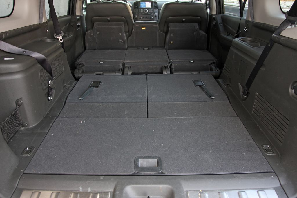 Miként a hajtáslánc, úgy az utastér technikája is elsőrangú. Profi a (feláras) navigáció, jól szól az azzal együtt adott Bose hifi és a kulcs nélküli nyitórendszer is felettébb kényelmes. Helykínálatból elöl kitűnő, a középső sorban inkább csak egy erős közepes, leghátul pedig kettes alá a Pathfinder - felnőtt mércével. A gyerekek persze sem középen, sem a leghátsó sorban nem fognak panaszkodni, ám hosszabb utazás után a támlák hátán látható cipőnyomok jól mutatják: a legkisebbek is elérik azokat, azaz átlagos hosszúságú, de legalább törésmentes a hátsó sorok lábtere. Az első fotelek kifejezetten kényelmesek, de a csúszós bőrkárpittal tartásuk kevés. Az ülések mérete a hozzájuk járó hellyel arányos: elölről hátrafelé jelentősen csökken. Szerényebb a tendencia a pakolóhelyeknél, elöl kétrekeszes a kesztyűtartó, egészen mélyek és hosszúak a 1,5 literes palackok tartására is felkészített ajtózsebek és még a váltó mögött is van két pohártartó, plusz a könyöklő gyomra is sok cuccot nyelhet el. Középen az elsőkhöz hasonlók az ajtózsebek, rekeszesek az első ülések háttámlái, pohártartó és apró kacatgödör pedig a leghátsó utasoknak is jár az oldalfalakban. Az ottani műanyagok már az előrébb találhatóknál is jóval puritánabbak, hiszen ekkor már lényegében a csomagtérben járunk. A két leghátsó ülés az 5 ülés mögött 515 literes csomagtér aljából hajtható ki egy-egy mozdulattal – a primitív, lamellás kalaptartó kiemelése után. Hét ülés mögött kisautónyi, 190 literes poggyásztér marad, az összes ülés lehajtásával pedig 2091 literes, egysíkú, de a leghátsókhoz hasonlóan egyenként hajtható középső sornál lyukacsos padlójú a raktér.