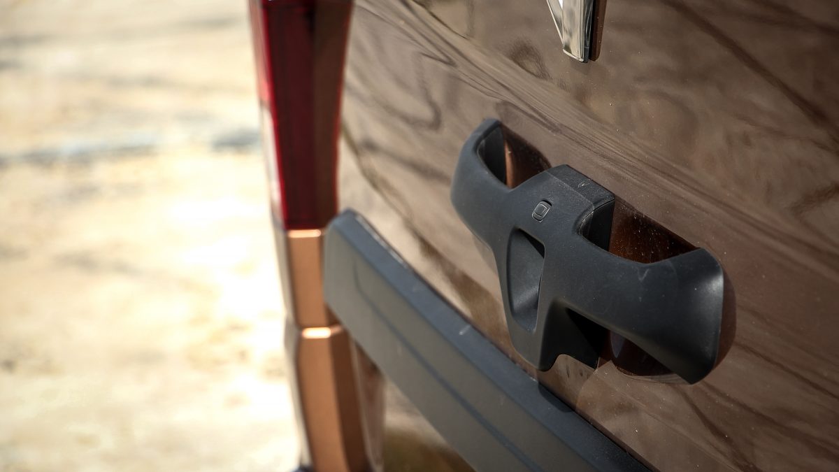 Krómkeretes műszereiről és fényes kiegészítőiről ismerhető fel, szerencsére itt a kijelzőre került a tolatókamera képe, nem a tükörbe
