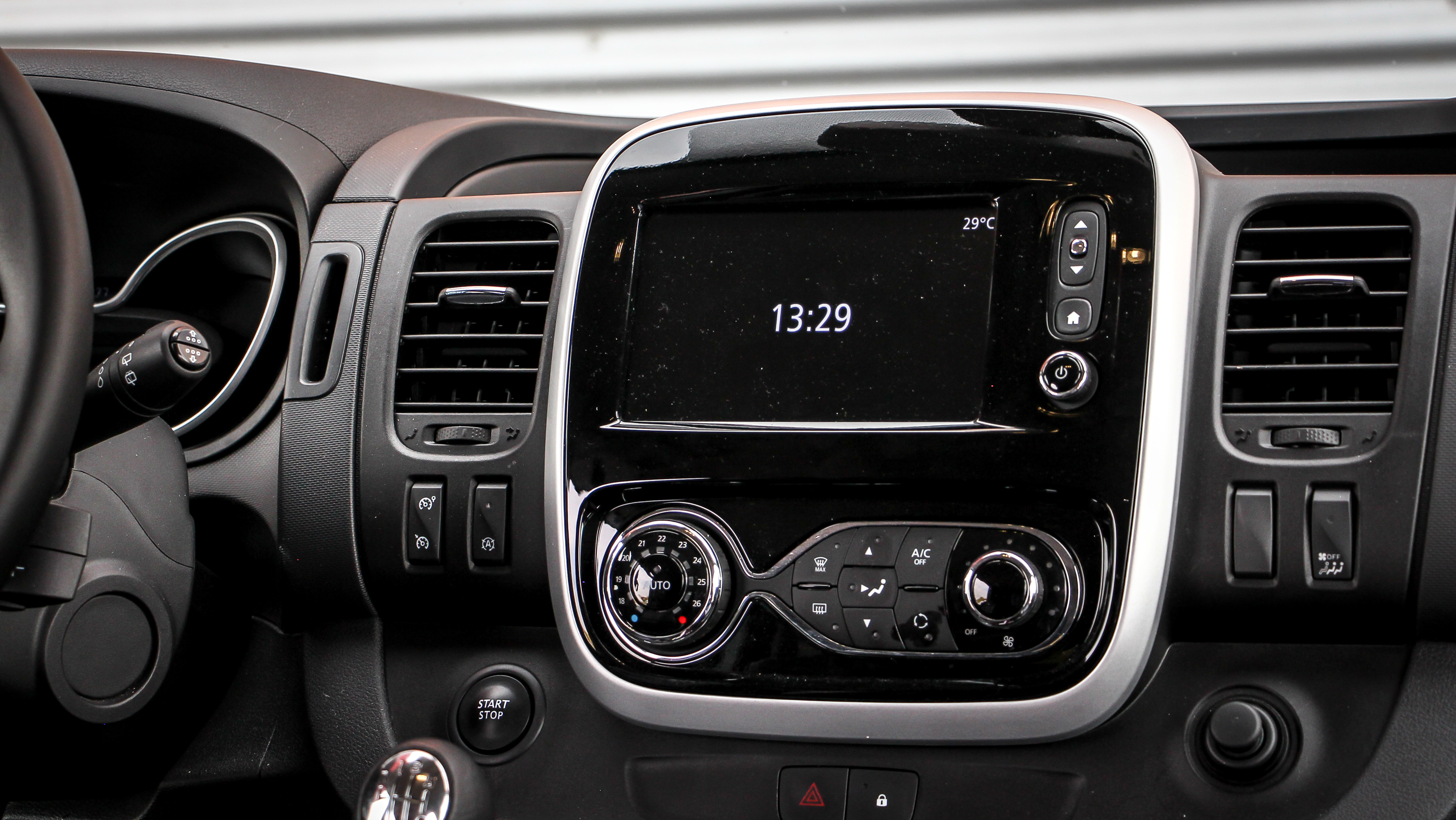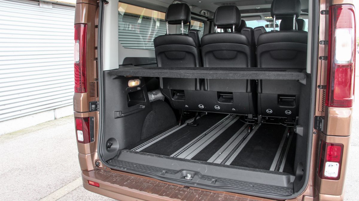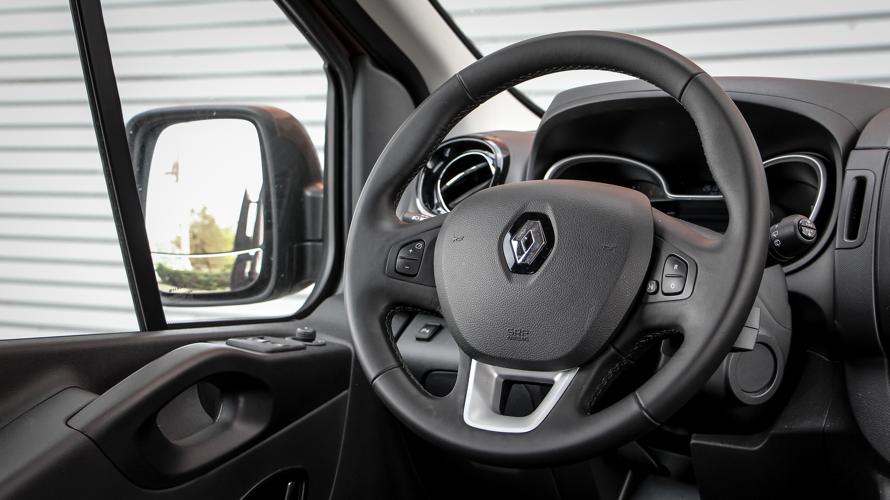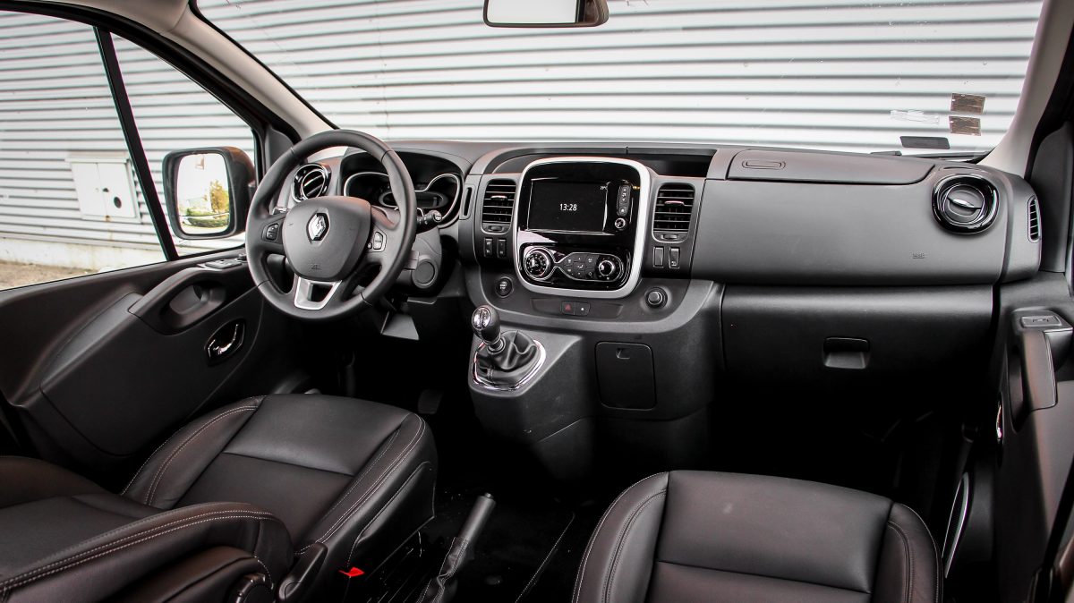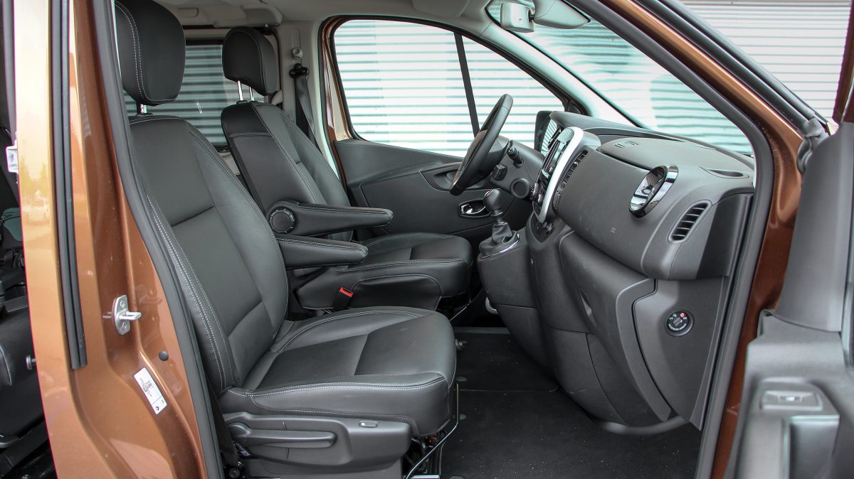 A Spaceclass utasterének nagy előnye az egész jó, de inkább átlagosnak tűnő minőségű bőrüléseken túl a kárpitozás. Az egyszerűbb Trafickben a világos kárpitok helyén nincs semmi, csak a pőre fényezett lemez, itt ez egy kicsit otthonosabb, és nincs több zaj az utastérben tőlük, mint alapesetben, sőt, így kevésbé teherautós az érzet. A teljes padló is szőnyegezett, de az anyagok nem épp prémiumhatásúak, csak átlagosak. Elöl két különálló, magasságállítású és fűthető ülést kap, utóbbi viszont opciós felszereltség. A helykínálat elég jó, viszont a könyöklő magassága nem állítható, az utasokén hátul viszont igen. Elöl így nem áll jól, mindkettő lefittyed, ami pont nem optimális.