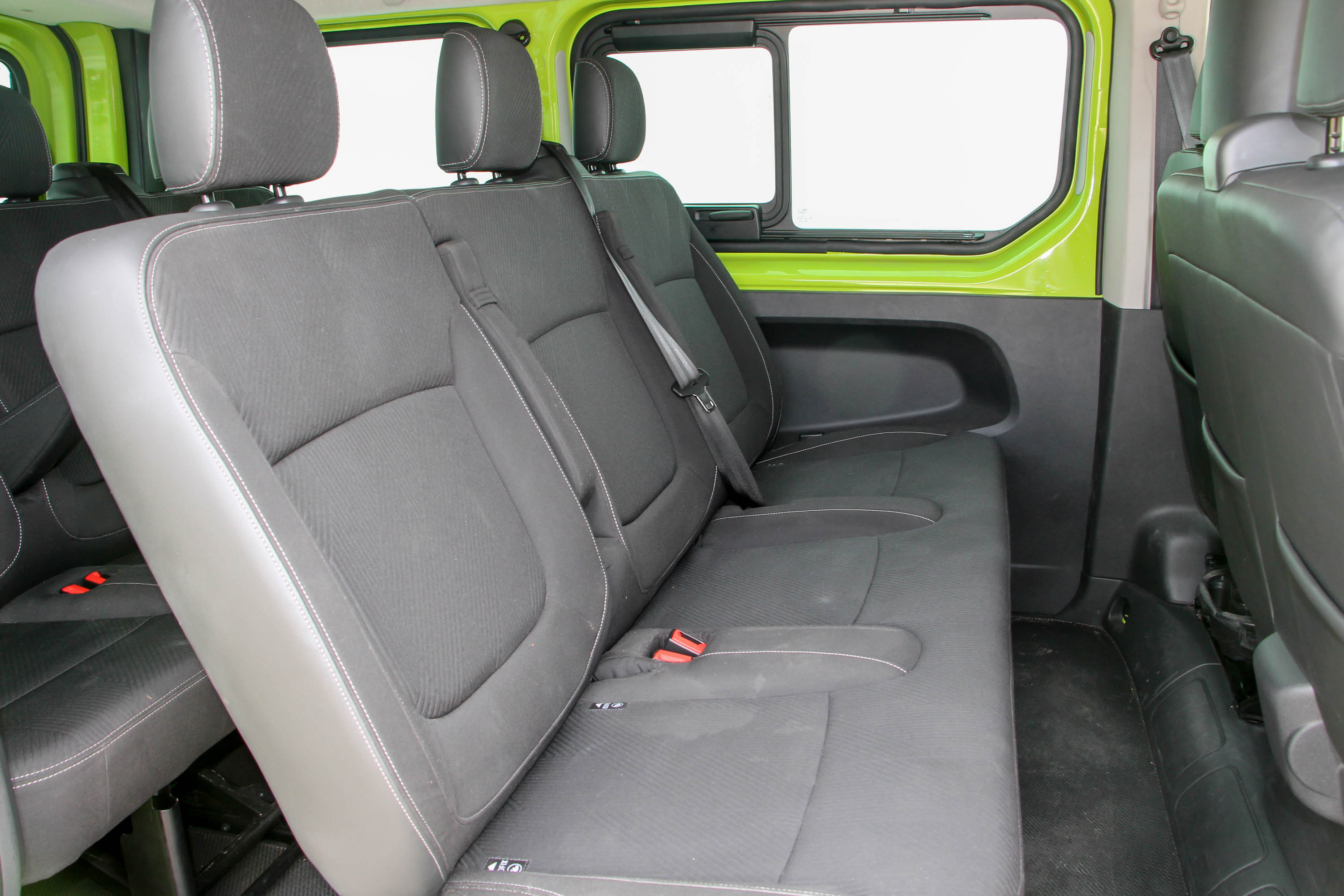 Mindenki ezzel utazna. Ha azt nézzük, hogy adott pénzért egy autóval hány barátot szerezhetünk, a Trafic biztosan élen járna. A feltűnő, kicsit megosztó, de a többségnek egyértelműen tetsző, mindenképp élénk színű tesztautóval a lehető legkönnyebb volt spontán túrákat szervezni, mindenki akart hozni még egy embert, aminek az lett a vége, hogy végül a kilencszemélyes furgon is kevésnek bizonyult. Verhetetlen a Trafic akkor is, ha személy/fogyasztás értéket nézünk, ráadásul az összes ülőhelye korrektnek mondható. A második és a harmadik sor ülései gyakorlatilag azonosak, láb-és fejtér mindenhol van, a belső szélesség elegendő, a komfort a sofőr melletti dupla ülésen a leginkább korlátozott, extraként rendelhető persze szimpla, a vezetőével azonos kényelmet adó utasülés is. Feláras a bal oldali hátsó tolóajtó is, ami nekünk nem túlzottan hiányzott, legalább csak egy oldalon kell elkapdosni a gyerekeket. Ami viszont nem rendelhető, az a kettőnél több Isofix. Mindösszesen ennyi lehet a Traficben, ami bizony kevés.