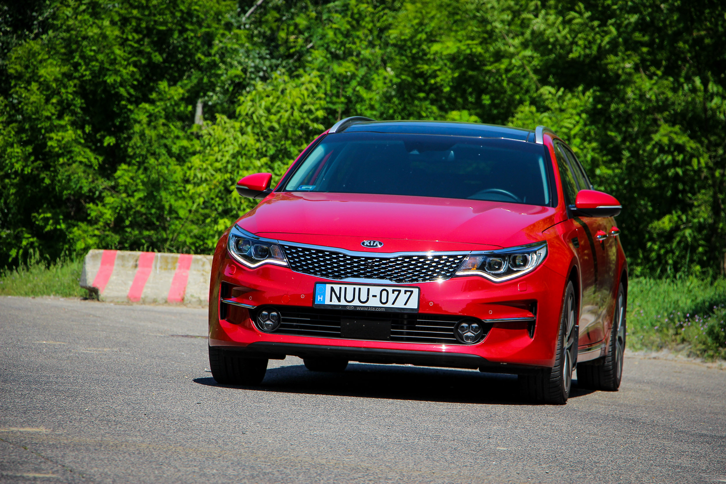 Húzós. Az egyetlen, ami ijesztő lehet az Optima SW-nél, az az ára. Tesztautónk akciósan, Techno csomaggal, automata váltóval, metálfénnyel alulról karcolja a 11 milliót. Ennyi egy családi autóért nyilván durva összeg, a céges keretből is inkább választanak a legtöbben ennyiért fapados Audit, vagy Passatot. Ennél az összeállításnál viszont van ésszerűbb döntés, persze nehéz lemondani a szellőztethető bőrülésekről, de sokak hosszútávon úgy is inkább a szövet mellett voksolnak. Egy ilyen 1,7-es dizellel, kézi váltóval szerelt EX Limited szintű Optima is remek választás lehet, és akár a napfénytetőt is kérhetjük hozzá. Automata vészfékrendszer, holttér figyelő és keresztirányú forgalom figyelő, meg adaptív tempomat viszont csak a Techno csomagban érhető el, az pedig csak egyel följebb. Egy Kia is tud elég drága lenni, viszont remek extrákat kínál, abszolút ehető külsőben, na meg persze ott az alapáron 7 év/150000 kilométer és 12 év átrozsdásodás elleni garancia, amitől szintén egyre csak csábítóbb ajánlat lehet.