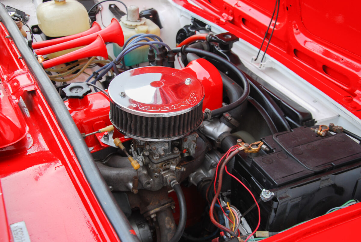Az igazi meglepetés azonban a motortér, ahol az autó színére fújt szelepfedél mellett sportlégszűrőt és különböző hangeffektekkel szolgáló kürtöket találtam a gépháztető felpattintása után. A hatalmas Zsiguli felirat már csak hab a tortán, a 62 lóerős, 1198 köbcentis, négyhengeres erőforrás pedig gyönyörűen jár, könnyen indul és meglepően erős. Már persze a maga gyári adat szerint 21 másodperces gyorsulási értékéhez képest, amelynél jobbat jelen állapotában sem feltétlenül kellene produkálnia. Komolyabb módosításokat ugyanis a motortérben nem hajtottak végre, csak a szokásos beállítási finomításokat, illetve a korabeli, háztáji optimalizálásokat.