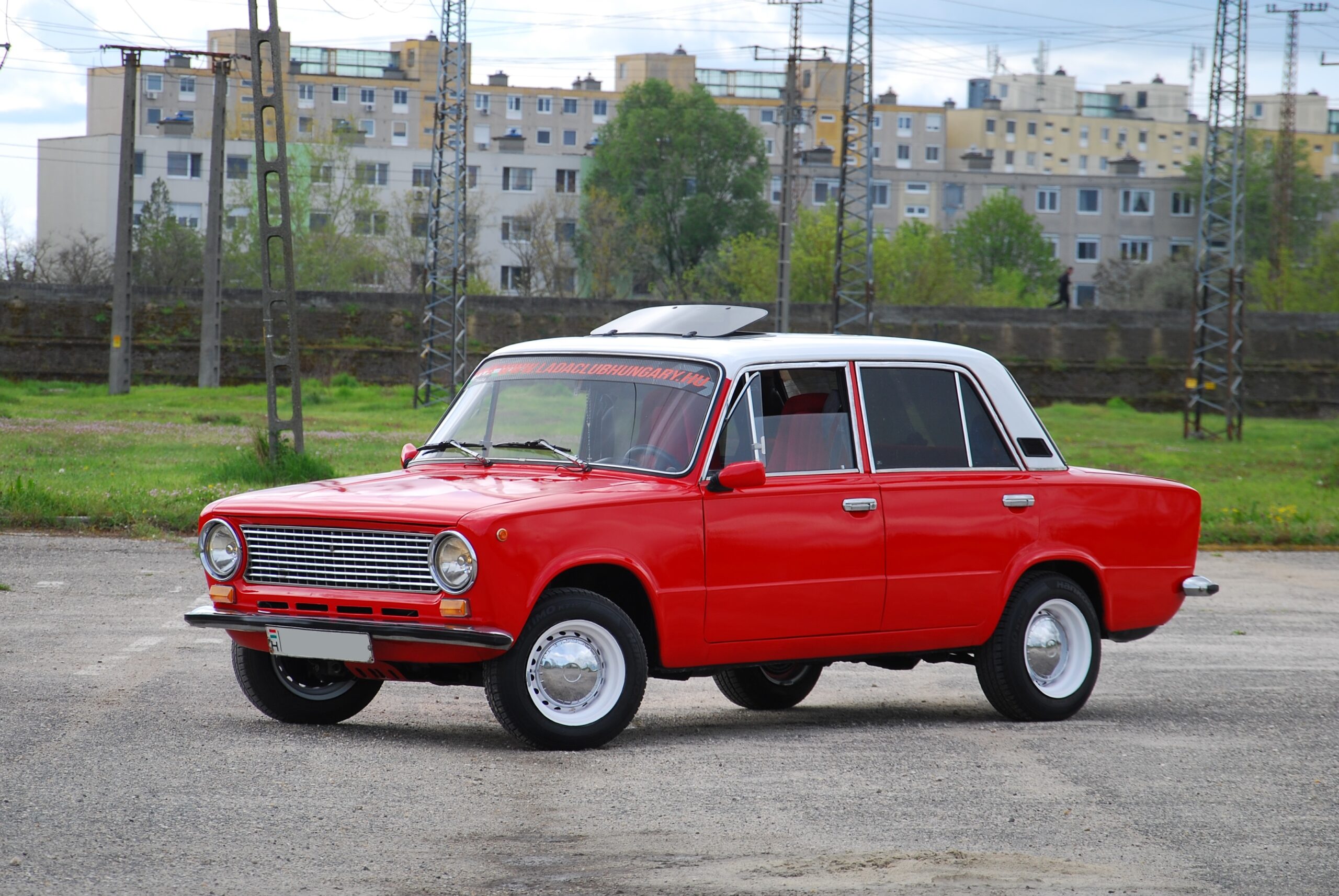 "Zimmer Frei" táblák alatt érkezik álmaitok Zsigulija, ez a fehér tetős, kifordított felnis, rikító piros