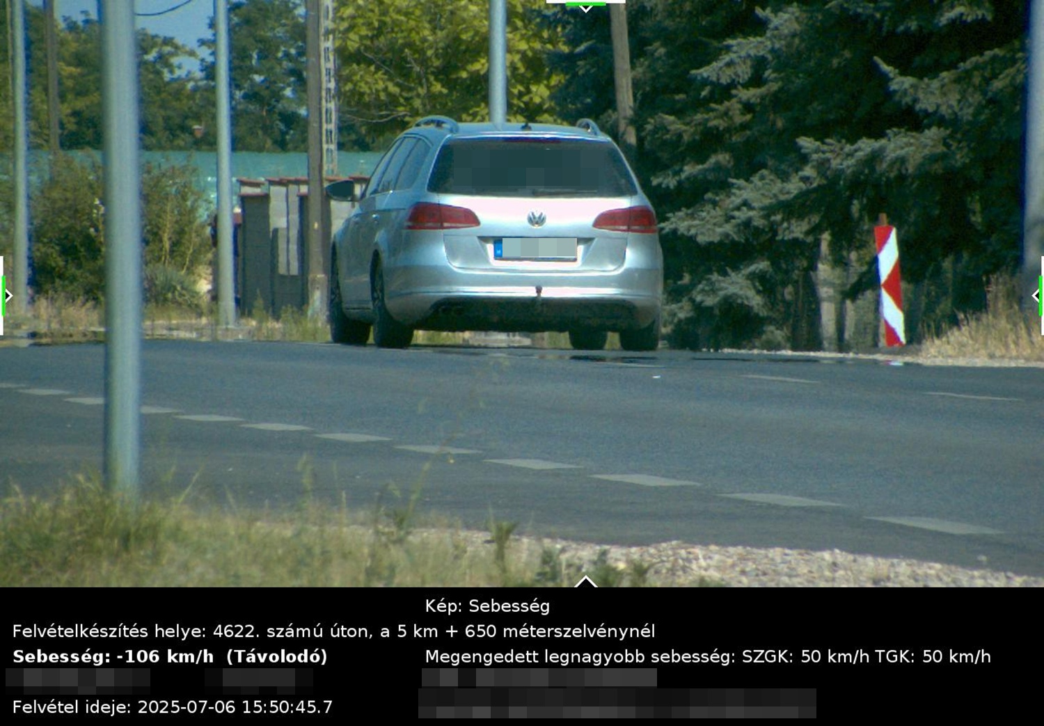 Két további esetben is jelentős sebességtúllépést rögzítettek. Ugyancsak 50-es tábla hatálya alatt az egyik gyorshajtót 106, míg a másikat 108 km/órával fotózták le. Bár ezen esetekben a rendőrség nem közölte a büntetés pontos mértékét, a hatályban lévő jogszabályok szerint szintén 210 ezer forintot kell majd befizetniük a közösbe.