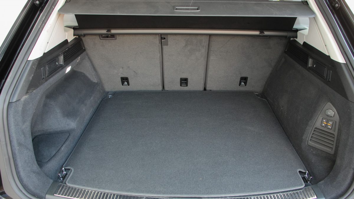 Alaphelyzetben is 810 literes, távirányítós, síkba hajló ülésdöntéssel 1,8 köbméteres a raktér, aminek ajtaja elektromosan, akár láblendítéssel is nyitható. Jobbra az elektromosan kinyitható vonóhorog és a légrugózás adta küszöbleeresztés gombja látható