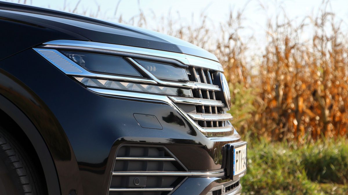 Sokáig azt hittem, hogy ezzel a hűtőmaszkkal van annyi tekintélye a harmadik generációs Touaregnek, hogy nem senki sem meri letiporni az útról, de teherautós azért akadt, aki úgy gondolta, ő azért erősebb. És voltaképpen igaza is volt, hiszen asszisztenseivel a Touareg előzékeny
