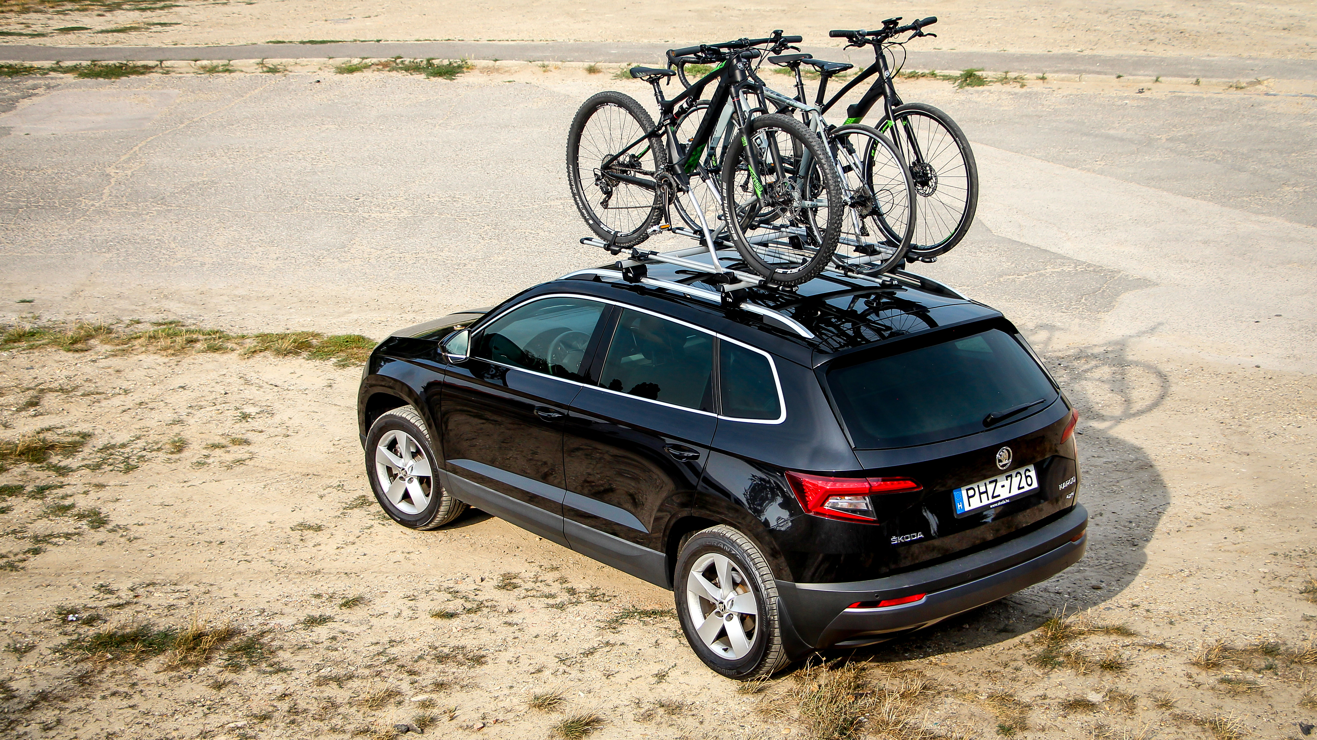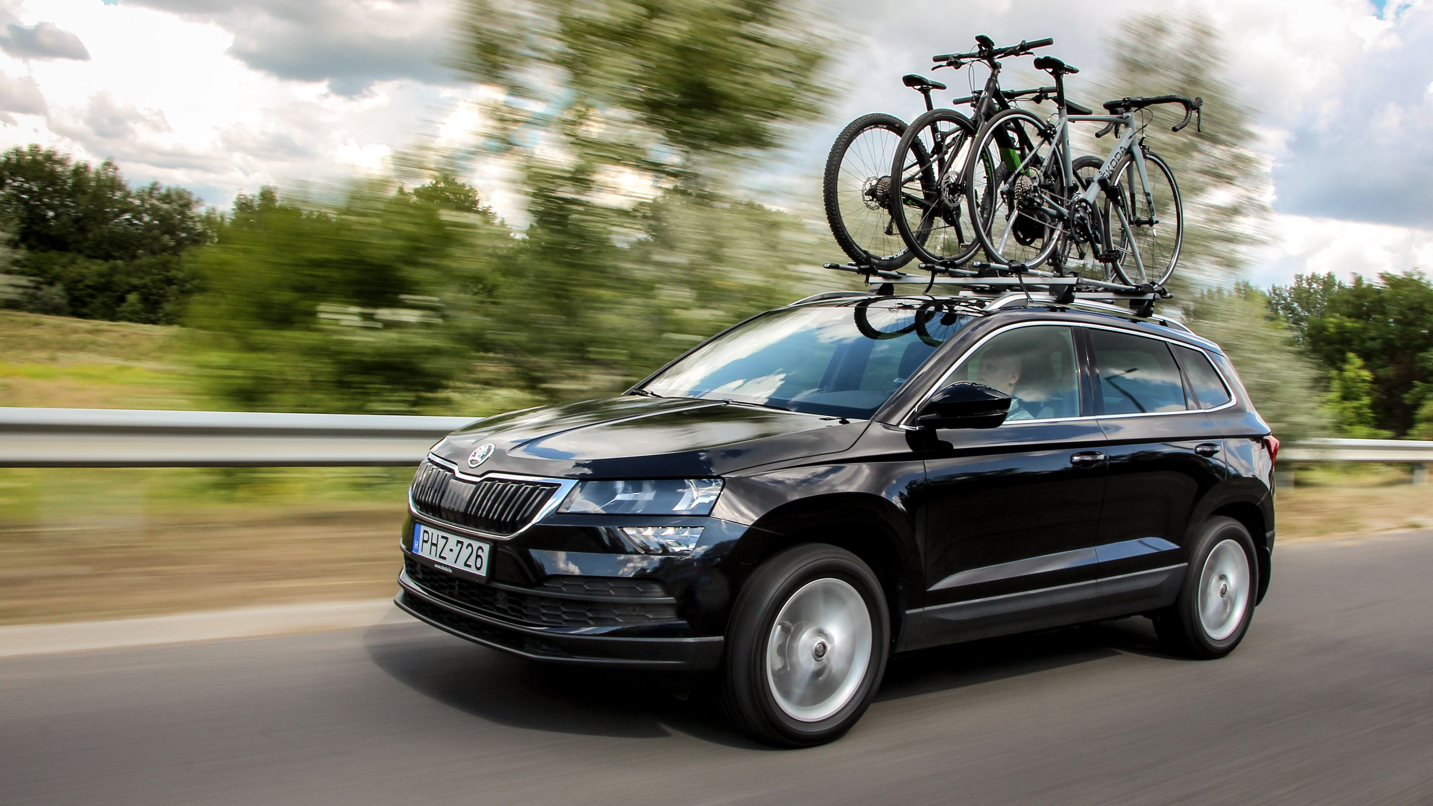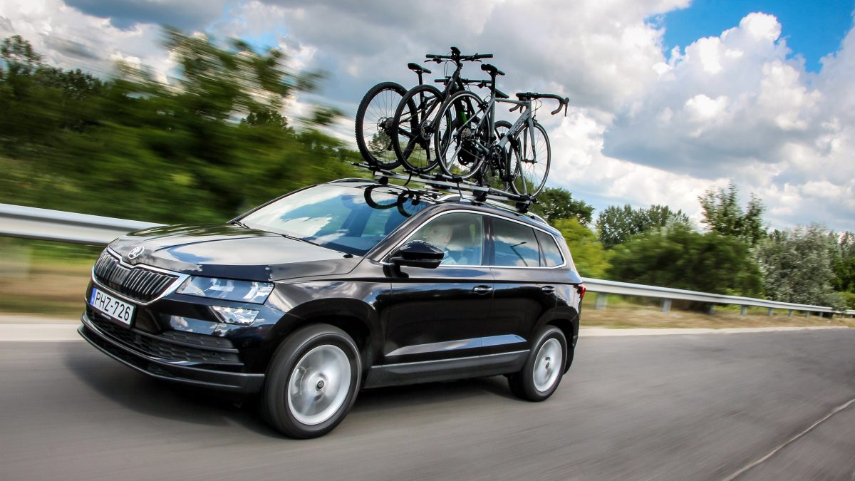 Komplett csomagot kaptunk, a Skoda bringákat Skoda kerékpártatóra erősítettük egy Karoq tetejére, ez ám a szabadidő-autós életstílus!
