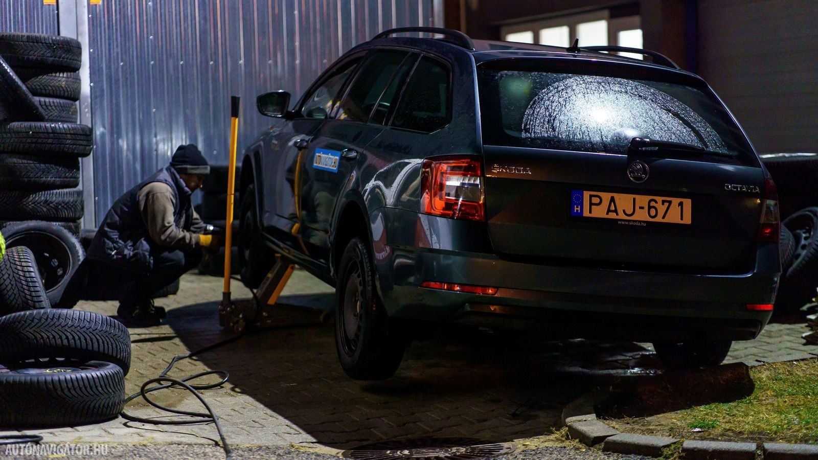 Amíg az egyik Octaviával mérünk, a másik új abroncsokat kap a nonstopgumi helyszíni szerelőitől