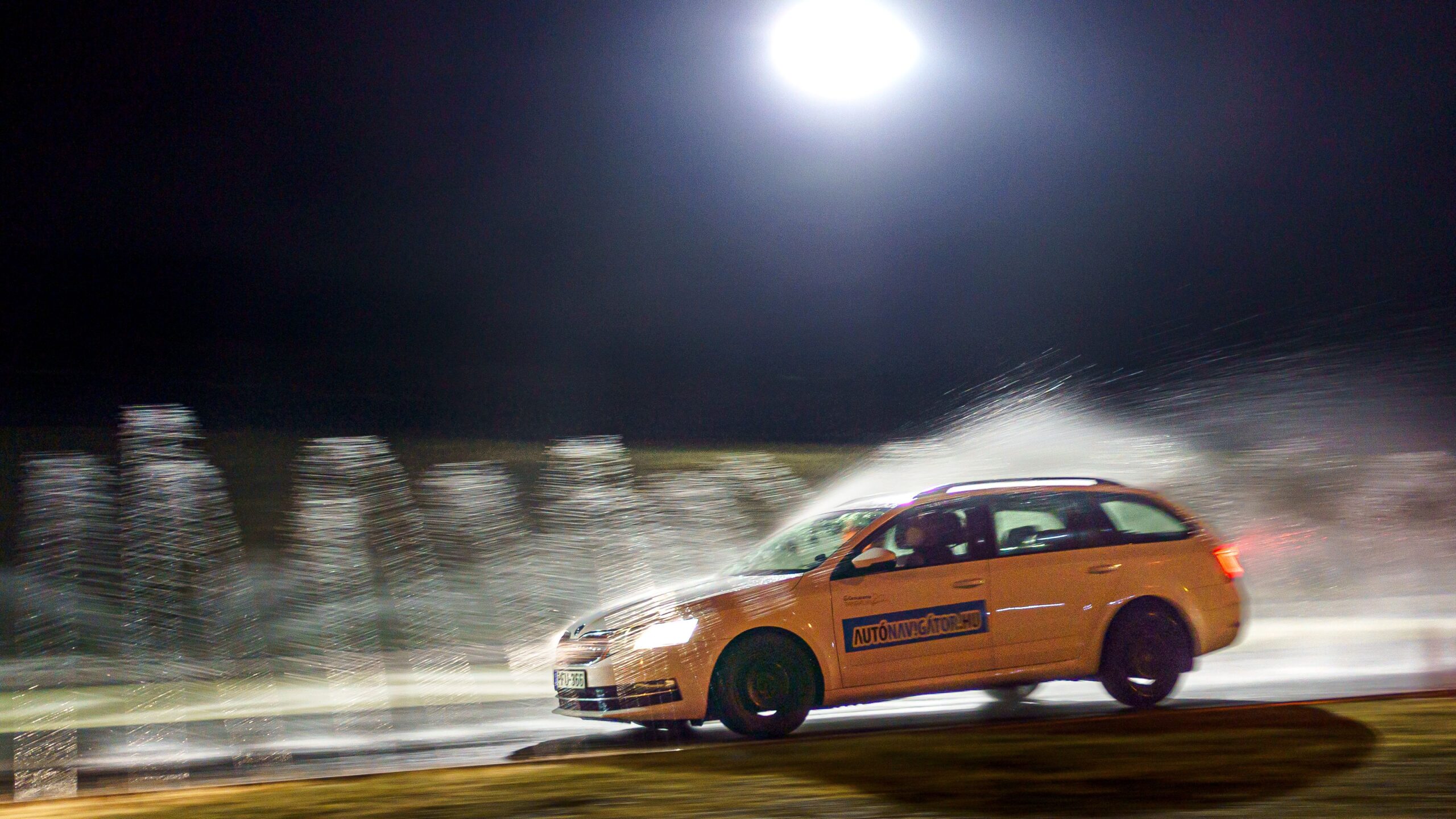 Sokáig volt rendőrségi Ford Focusokkal és 195/65 R15 mérettel dolgoztunk, az átlag magyar családi autó sajnos még nem jutott az előző generációs Skoda Octavia szintjére sem, de már néhány éve velük tesztelünk, 205/55 R16 méretben