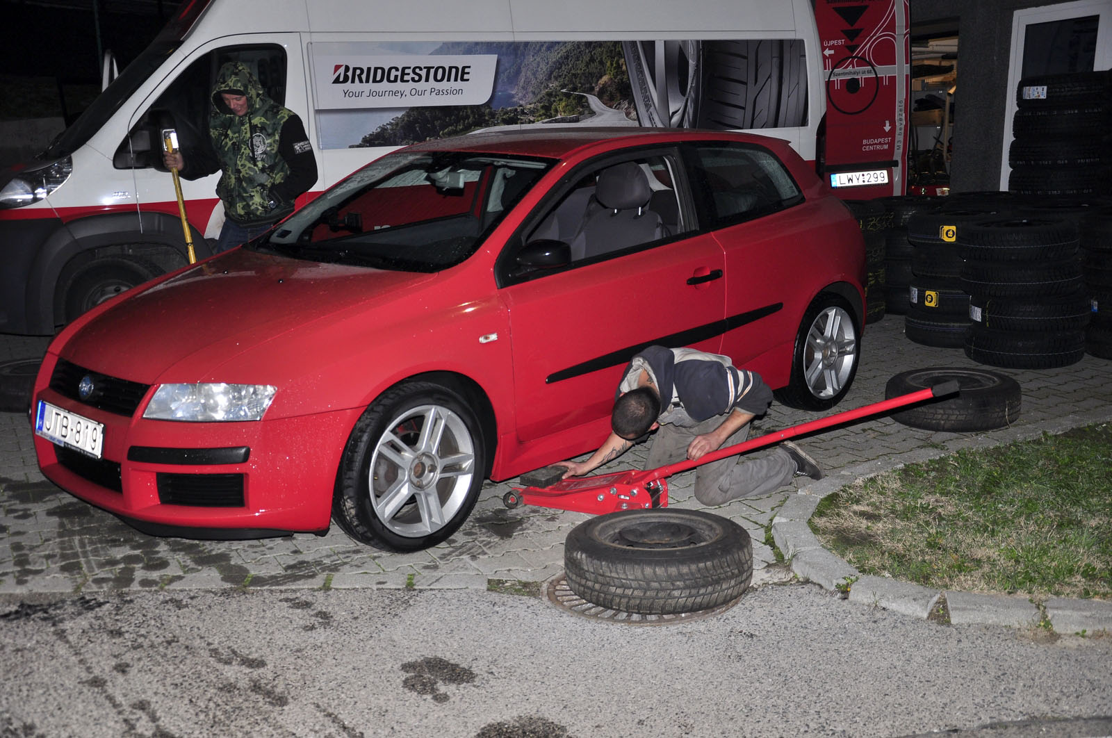 Az autókon túl is volt némi változás a tavalyi teszthez képest: szerelési szempontból például az, hogy a nonstopgumi.hu már nem csupán az abroncsokat hozta ki, hanem azokat mind felnire szerelten, centrírozva szállította a pályához. Amíg az egyik autóval mértünk, addig gond nélkül fel tudták tenni az új kerekeket a másikra. Méréseink a tavalyiak voltak, tehát a Hungaroring célegyenesében, száraz aszfalton 120, 100 és 60 km/óráról néztünk vészfékezést, míg a Tanpályán nedves, folyamatosan és egységesen locsolt aszfalton 60 km/óráról is vészfékeztünk, s ugyanott a jeges úthoz hasonlóan csúszós nedves műgyantán is mértük a féktávot 40, illetve 30 km/óráról. A csúszós úton mutatott kapaszkodóképességet szintén nedves műgyantán vizsgáltuk: 30 métert kellett mihamarabb megtennünk az egyes abroncsokkal. A ring célegyenesében mértük az autóban lévő zajt is, ami bizony hallhatóan is függött az abroncsoktól. Egy új mérésünk is volt továbbá: a gördülési ellenállás összehasonlítására a kigurulás; szintén a célegyenes egy meghatározott részén néztük, hogy 15 km/óráról üresben hány métert gurul sík úton az autó. A méréseket a már korábban is alkalmazott módszerrel, a GPS Expert Kft. által biztosított eszközökkel végeztük, illetve végezte számunkra Gere Tamás, a Budapesti Műszaki Egyetem Gépjárművek és Járműgyártás Tanszék doktorandusza. Hogy a mérések a kívánt tempókról meglegyenek, természetesen minden esetben azok fölé gyorsítottunk, minden mérést 5 alkalommal ismételtünk, s táblázatainkban már a szélső értékek elhagyásával számított átlageredmények láthatók.
