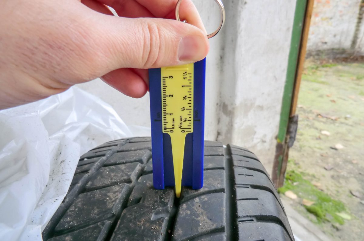 Nem csak le-felszereléskor, hanem szezon közben is, hosszabb utak előtt különösen ajánlott a profilmélység ellenőrzése (sok egyéb mellett). Ha a 100 Ft-os fémszínű része elsüllyed a gumiban, akkor az még jónak tekinthető