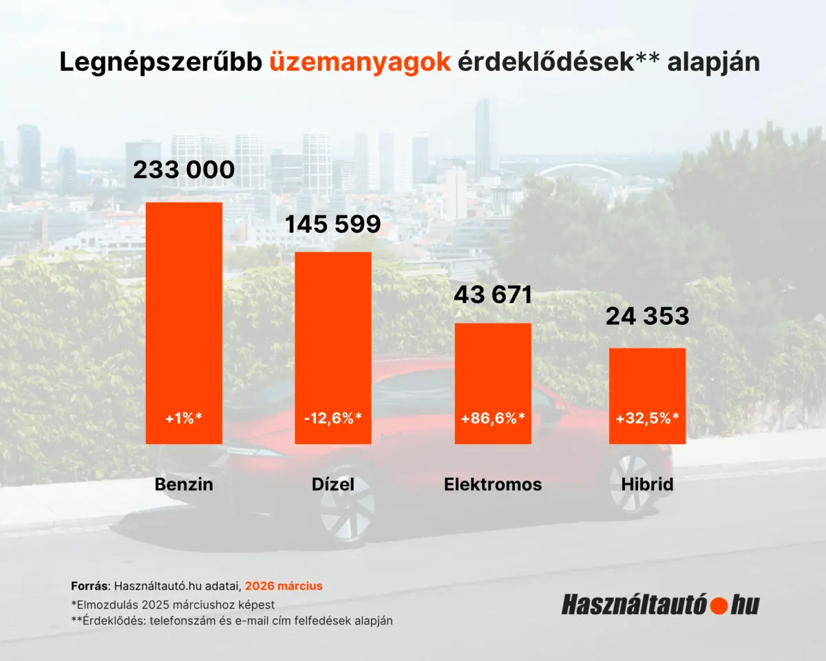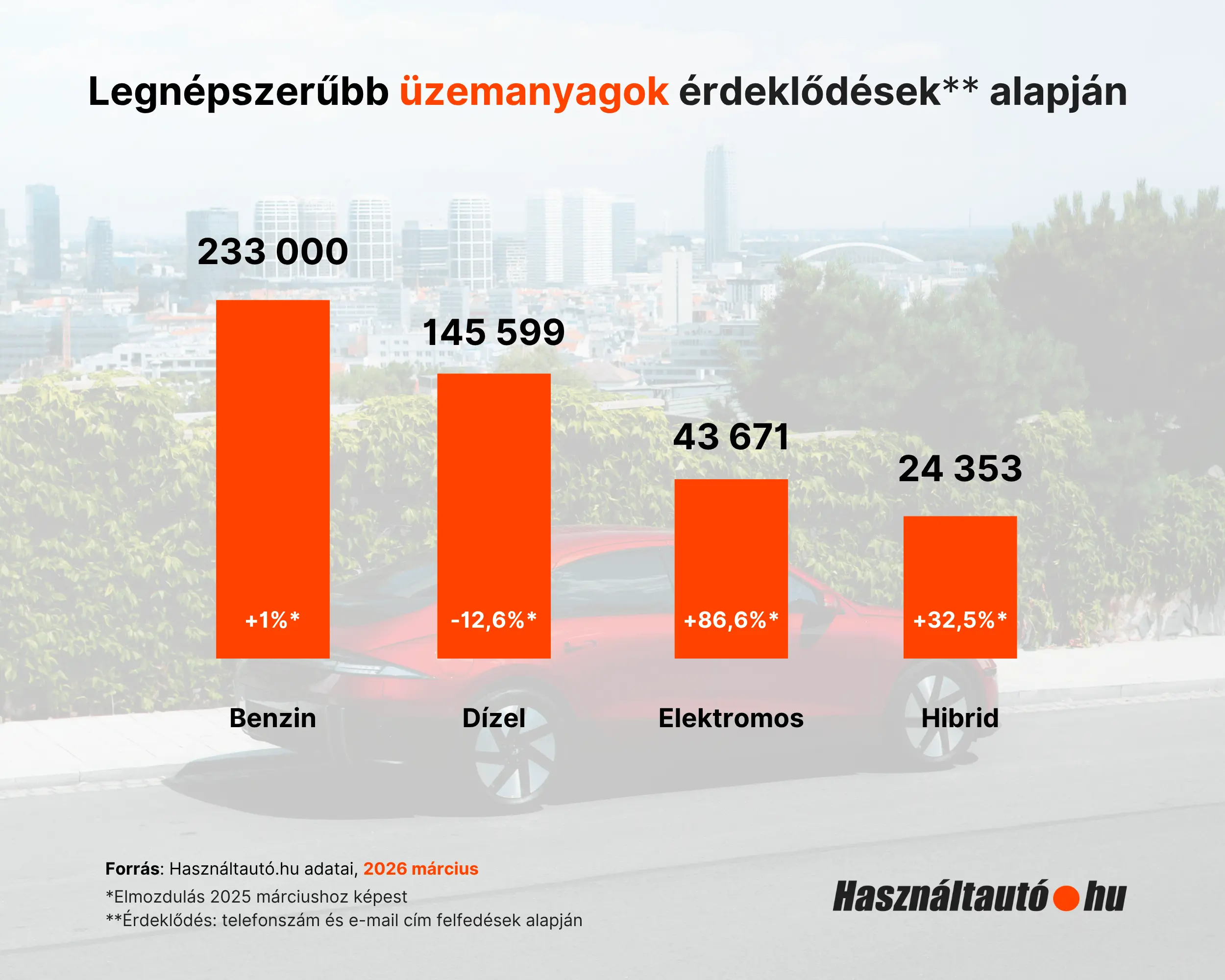 „A dízelautók iránti érdeklődés már egy ideje csökken, mostanra pedig több mint 20 ezerrel kevesebben keresik ezeket a modelleket tavalyi év azonos időszakához képest. Bár a dízel továbbra is stabil és sokak által kedvelt hajtáslánc, a visszaesés fő oka, hogy a céges vásárlók egyre kevésbé választják őket, emiatt pedig jóval kevesebb dízel kerül a használt piacra. Ezzel szemben egyre több elektromos és hibrid autó jelenik meg a kínálatban. A flották közelgő frissítése és az olajpiaci bizonytalanságok miatt több vásárló fordul az alternatív hajtásláncok felé.” – mondta Koralewsky Márk, a Használtautó.hu üzletágvezetője.