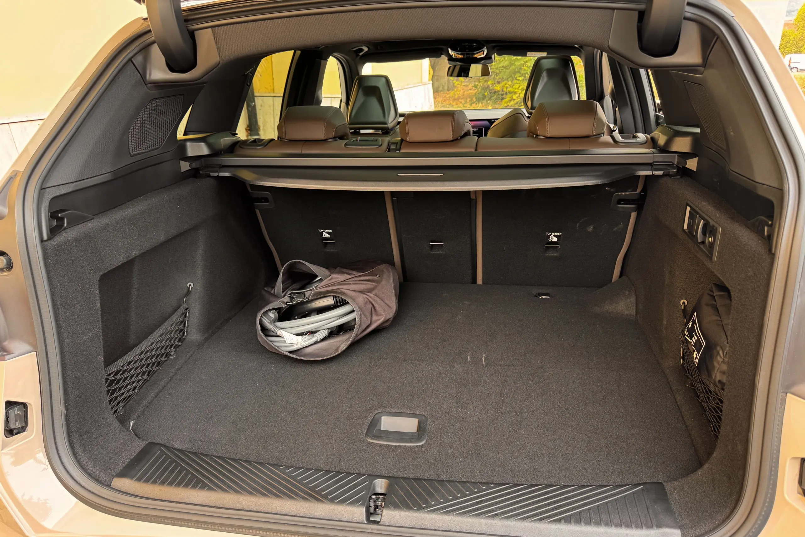 Bent is minden a szokásos: letisztult műszerfal, enyhén a vezető felé fordított infotainment képernyő, túl vastag kormánykerék, zseniális iDrive kezelőrendszer, fantasztikusan kényelmes ülések, és kellemes anyagok mindenfelé. Még az elsőre durva felületűnek tűnő, nagy textilburkolat is is hozzájárul, hogy gyorsan otthonossá váljon az utastér. Ami persze a hátsó utasok számára is nagy lábteret, széles vállteret és tökéletesen elegendő fejteret nyújt. A PHEV egyetlen hátránya a kisebb csomagtér, ami fura módon lejt is kicsit. Ugyanakkor ez a kisebb jelző is alapból 460 litert jelent (570 liter helyett), amelynek a legtöbb élethelyzetben elégnek kell lennie.