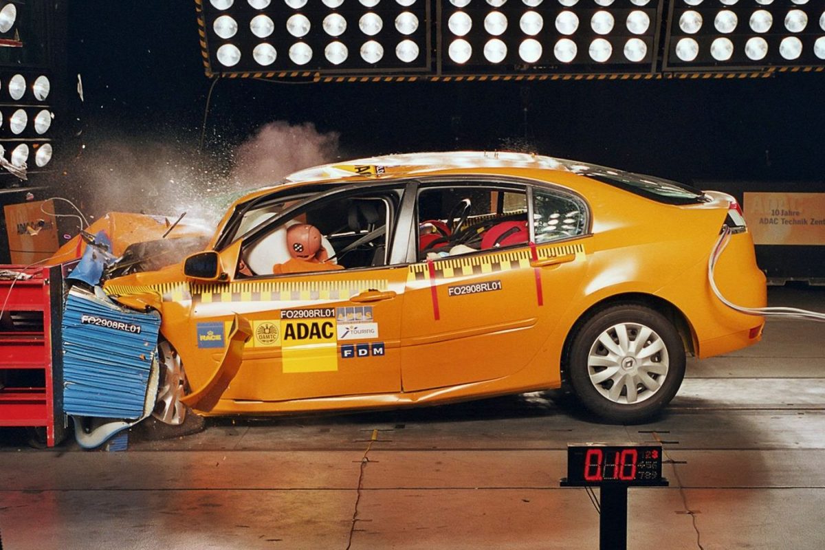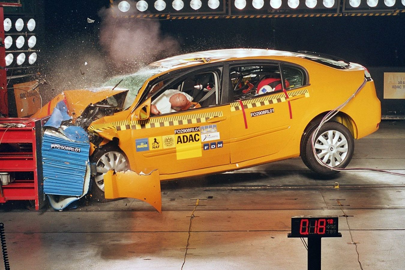ADAC teszt extrém kiadásban, avagy a szabványos helyett 80 km/órás tempóval elvégzett törésteszt. Az eredmény egyértelmű, oda lenne az 5 csillag, pedig a Renault Laguna az egyik legbiztonságosabb típus - de csak 64 km/óráig!