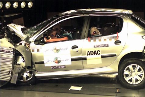 A német ADAC által extrém tesztre fogott Renault Laguna, és az alábbi Peugeot esete nyomban eloszlatja a ködöt. Amikor 2000-ben a Peugeot 206 begördült az Euro NCAP laborjába, akkor 50 km/órás sebességgel végezték el rajta az ún. féloldalas, átfedéses ütköztetést, és a teszt után a minősítők jónak mondható 4 csillagot adtak a felnőtt, és 2 csillagot a gyermekvédelemre. A Latin NCAP vizsgálaton azonban annak ellenére