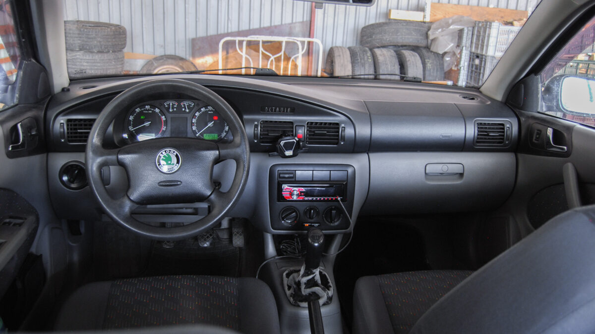 A beltér állapota általában nem igazán mozgatja meg azokat a tulajokat, akik szigorúan közlekedési eszközként tekintenek az autójukra. Az Octavia nem túl tartós anyaghasználata csak fokozza ennek következményeit, ám esetünkben egy egész korrektül egyben maradt kabinnal találkozhatunk. Ennek ellenére ki kell emelni, hogy amennyiben válságautót keresel, nem lehet prioritás az ülések, műanyagok és kárpitok állapota. Ha pedig csak egy első autó a cél, hogy legyen mivel végiggurulni a rakparton péntek esténként, akkor egy ilyen állapotú beltér még meg is könnyítheti az életed, hiszen nem kell aggódni az esetleges szennyeződések és véletlen károkozások miatt.