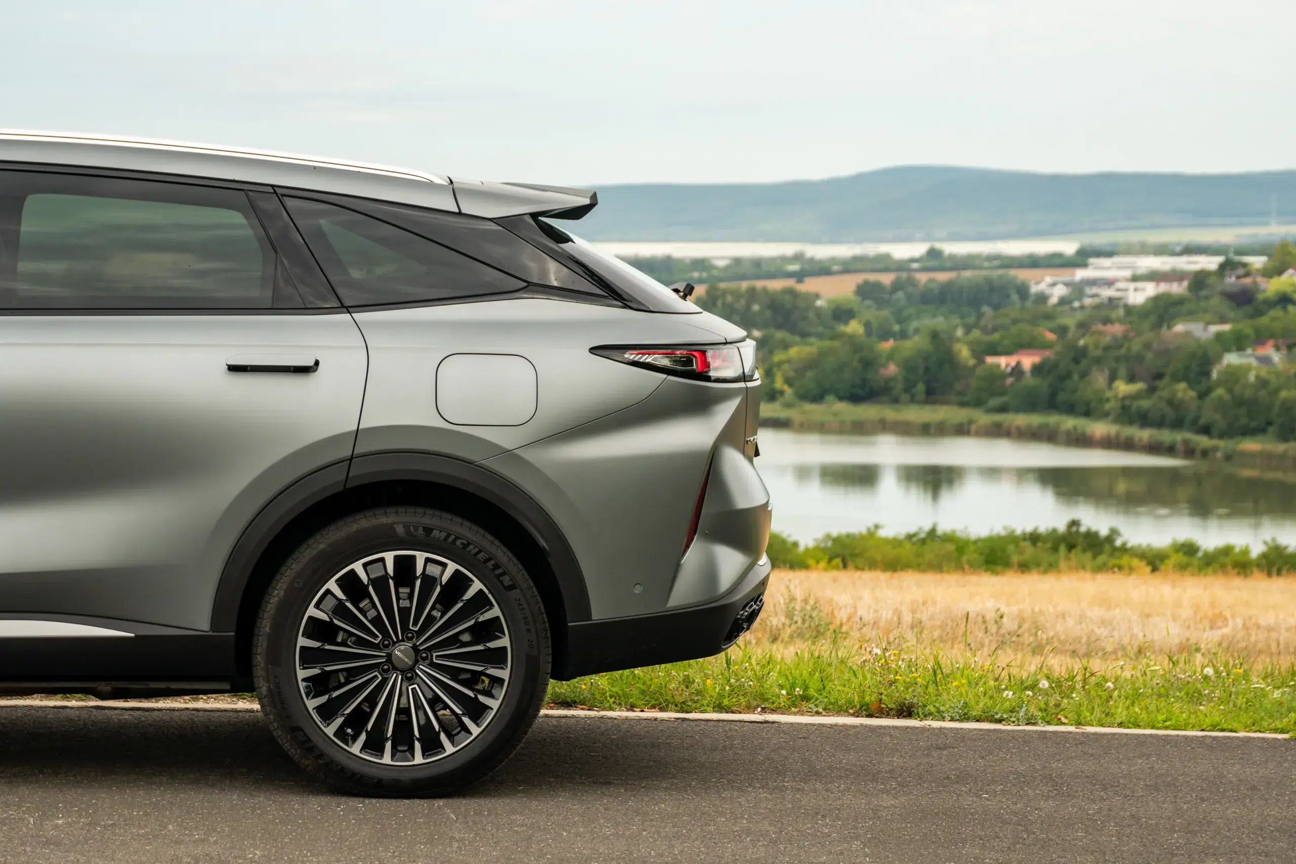 Pont egy Omoda 5 tesztautót vittem vissza, amikor először megpillantottam egy rendszám nélkül, a sarokban megbújó Omoda 9-est, és tisztán emlékszem mekkora WOW! faktor kerített hatalmába, pedig ez még hónapokkal a hazai debütálás előtt történt. Márpedig bárki, bármit mondhat, ha a dizájn megfogja a vásárlót, az már fél siker.