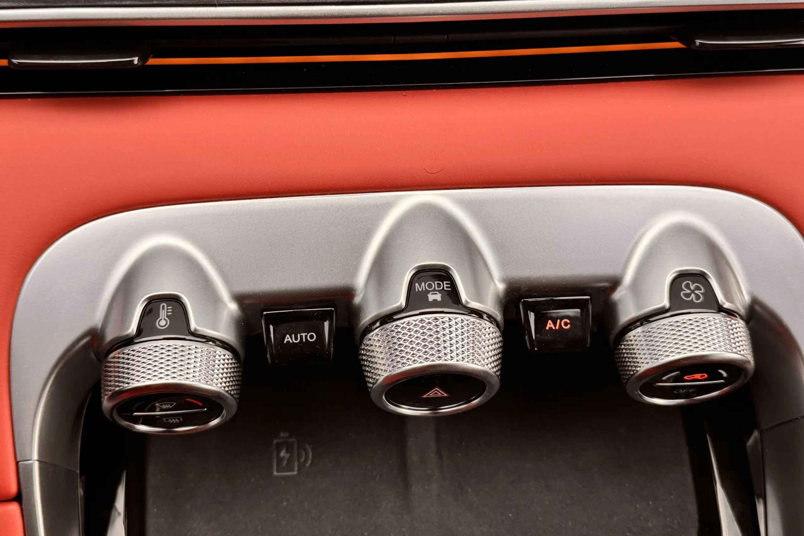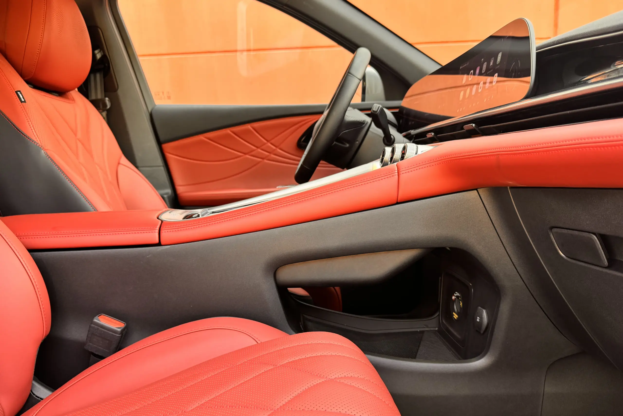 "instant get" érzés megteremtésére, tehát arra, hogy miután a külső megfogott, bent is azt mondhasd: ez kell! Nagyon szép a kidolgozás, kellemes az anyagok tapintása, jó fogású a kormánykerék, és van egy enyhe Mercedes utánérzés, amit lehet, csak az ajtópanelre helyezett ülésállító gombok okoznak. Imádom, hogy ívelt a monitor, ami a vezető előtt 12,3 colos, és középen ugyanekkora az infotainment érintőképernyője is. Lehet, hogy apróságnak tűnik, de felhasználóként ez nekem azt üzeni, hogy nem csak beleragasztottak egy tabletet, amit én is oda tudnék szigszalagozni, hanem foglalkoztak az esztétikusság kérdésével.