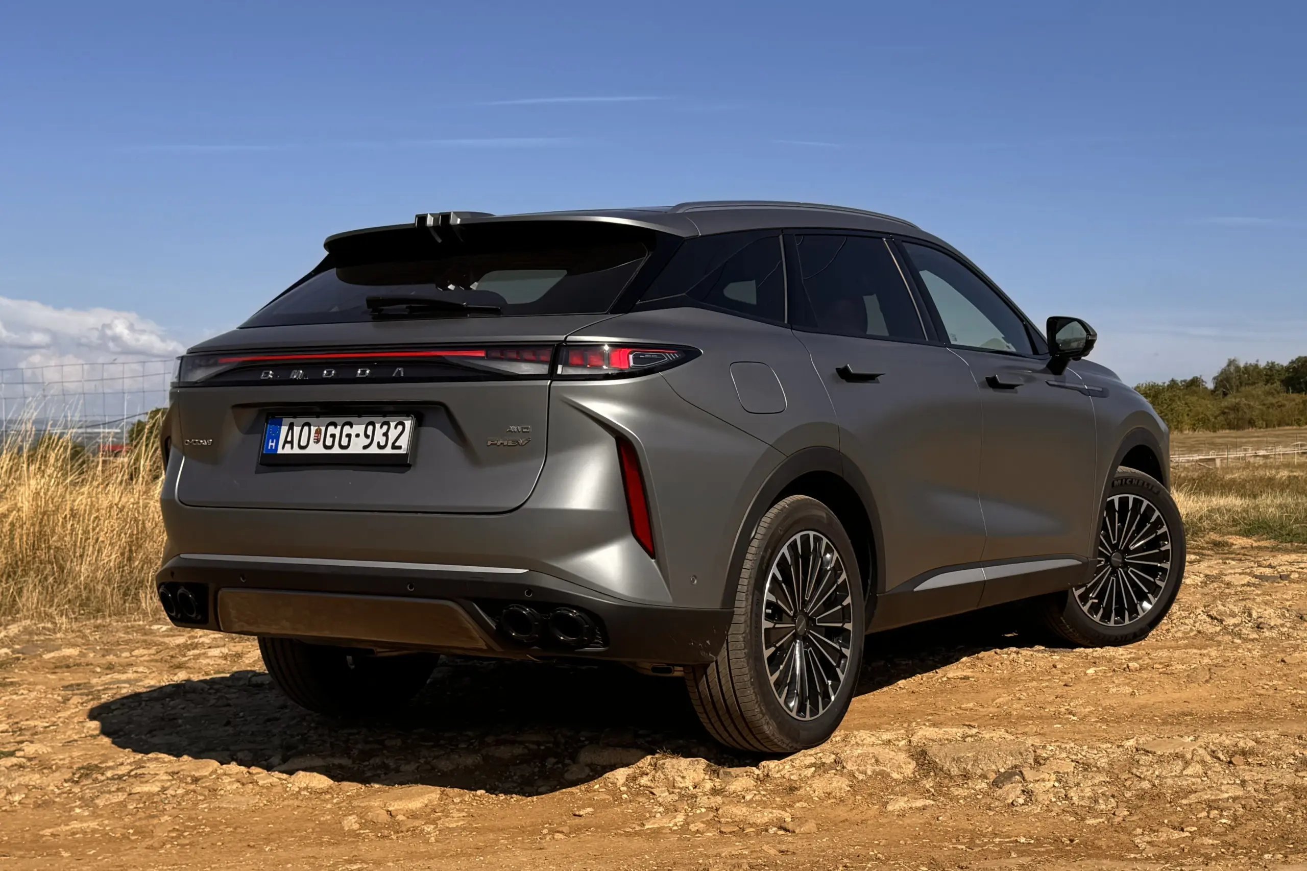 Összességében kellemes vezetni, jó vele utazni. Mondanám, hogy akár egy ültő helyemben 1100 kilométert, de ezt a teljes hatótávot nem teljesítettem vele, viszont lemértem, hogy a kerek 140 kilométert tudja tisztán villannyal, bár tény, hogy ehhez tojásokon lépkedtem és minden spórolós tudásomat bevetettem. Aztán, amikor már nem figyeltem a fogyasztáscsökkentő trükkökre, akkor is simán 120 kilométert gurult villannyal. Aki siet, tudja 65 kilowattal villámtölteni a 34,46 kWh kapacitású akkumulátort, de amúgy 6,6 kilowattal csorog bele az áram. Üzemanyagtartálya 70 literes, ha nincs az aksi töltve, akkor benyakal 8 liter benzint vegyes használatban 100 kilométeren. Terepen nem kínoztam, csak könnyed földúton használtam, de a hasmagasság elég a telekjárásra, illetve alul a motorvédő burkolat is hasznos.