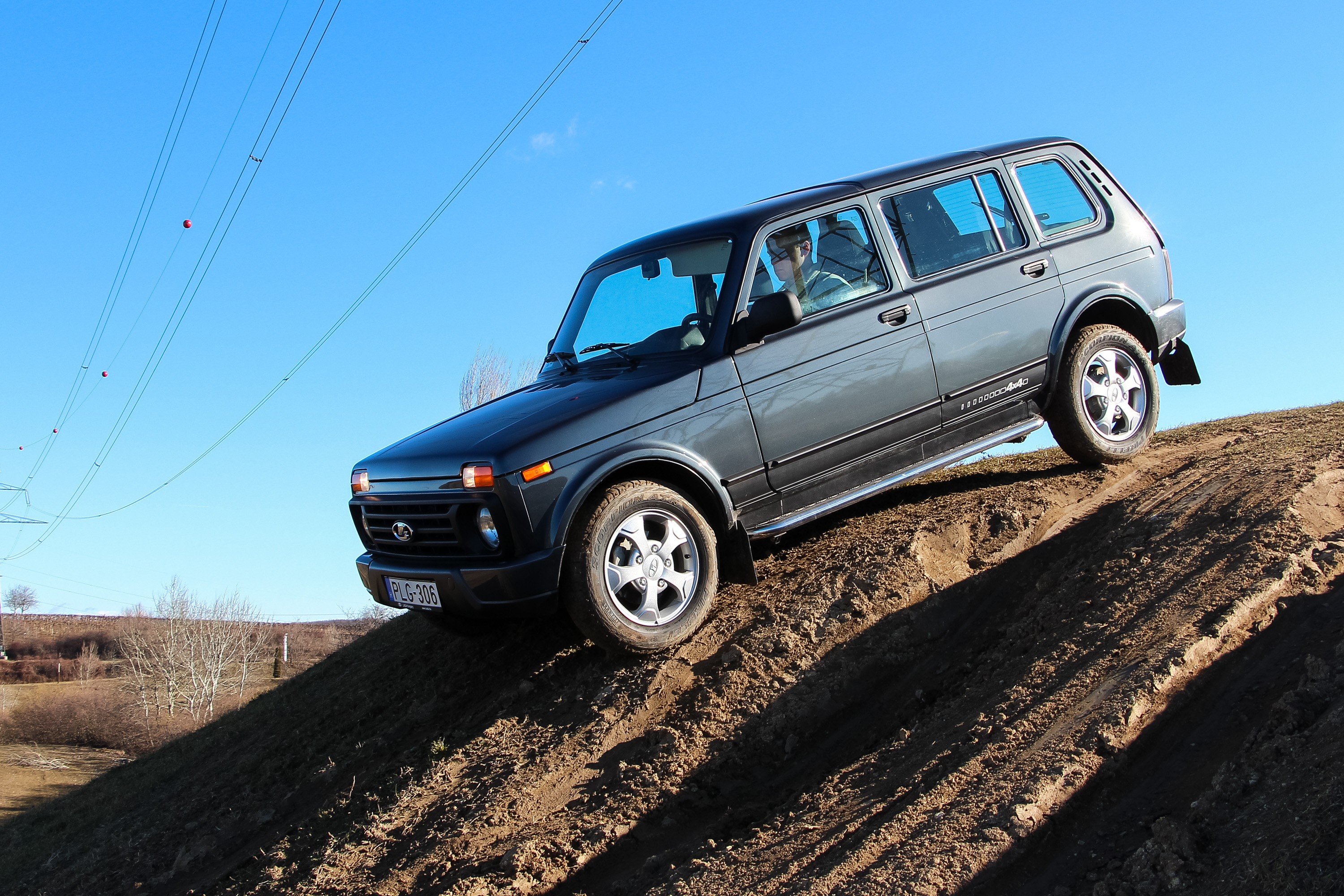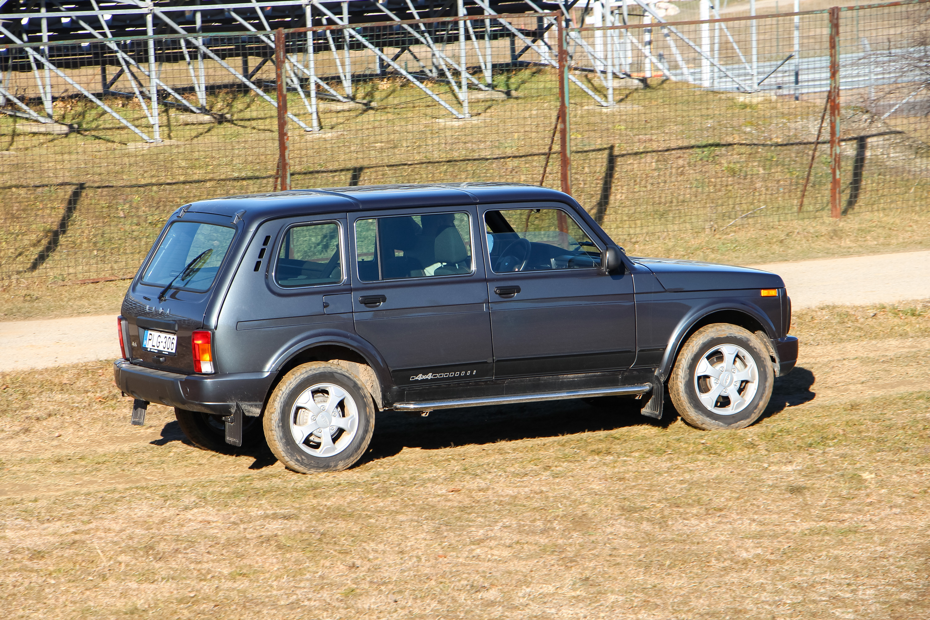 A rövid karosszéria ellenére is nagy kérdés, hogy a tengelytávot is érintő 50 centis toldás, a 2,7 méteres tengelytáv mennyire korlátozza a rövid változatával keskenysége miatt terepen bajnok 4x4-et. Nem túlzottan, főként akkor, ha hozzászokunk a nagyobb (zárt differenciálművel főként nagyobb) fordulókörhöz. A 4x4 hajtásláncában hiába csak a központi differenciálmű zárható, a futómű kimozogja a tengelyenkénti diffizárak hiányát, elég hosszúak a rugóutak. Pedig itt aztán nincsen ESP, kerekenkénti fékezéssel, sofőrsegédek közül egyedül ABS szerepel, de a munkát azért könnyíti a hagyományos, hidraulikus szervokormány. Terepen egyébként messze nem olyan melós a Lada 4x4 vezetése, mint azt sokan hinnék, a rendkívül rövid felezőáttétellel van idő az apró korrekciókra, illetve nincs is sokra szükség, ugyanis az 1,68 méteres szélesség igen csekély, így a kis ösvényeken is jól el lehet férni. Szűk fordulókban persze előfordul, hogy a hosszú verzióval már tolatni kell egyet. Az első terepszög 40, a hátsó 32 fokos, a hasmagasság 213 mm, a gázlómélység pedig tisztességes 50 centiméter. Terepen bajnok a Lada 4x4, még ötajtósan is, az pedig nem kérdés, hogy az 50 centis nyújtás megéri az érte kért 300 ezer forintot, amivel legolcsóbban 3,3, a gazdagabb Urban felszereltséggel 3,7 millió forinttól kaphatjuk meg. A Lada 4x4-nél nincs motoropció, mindenképp az 1,7 literes, hengerenkénti 2 szelepes, 82 lóerős és 129 Nm nyomatékú benzines dolgozik benne. Nem egy erőgép, de a felezőáttétellel terepen is elég az ereje.