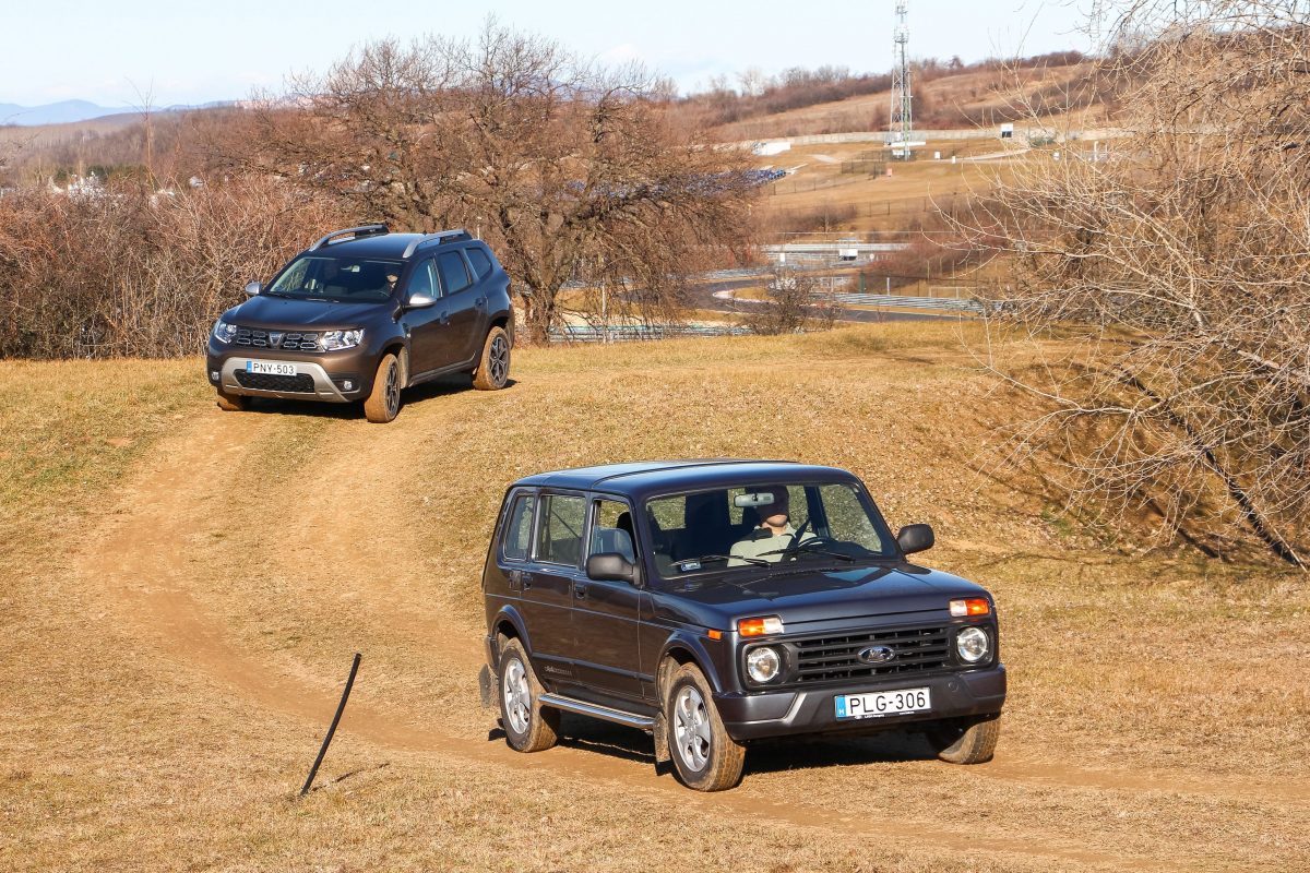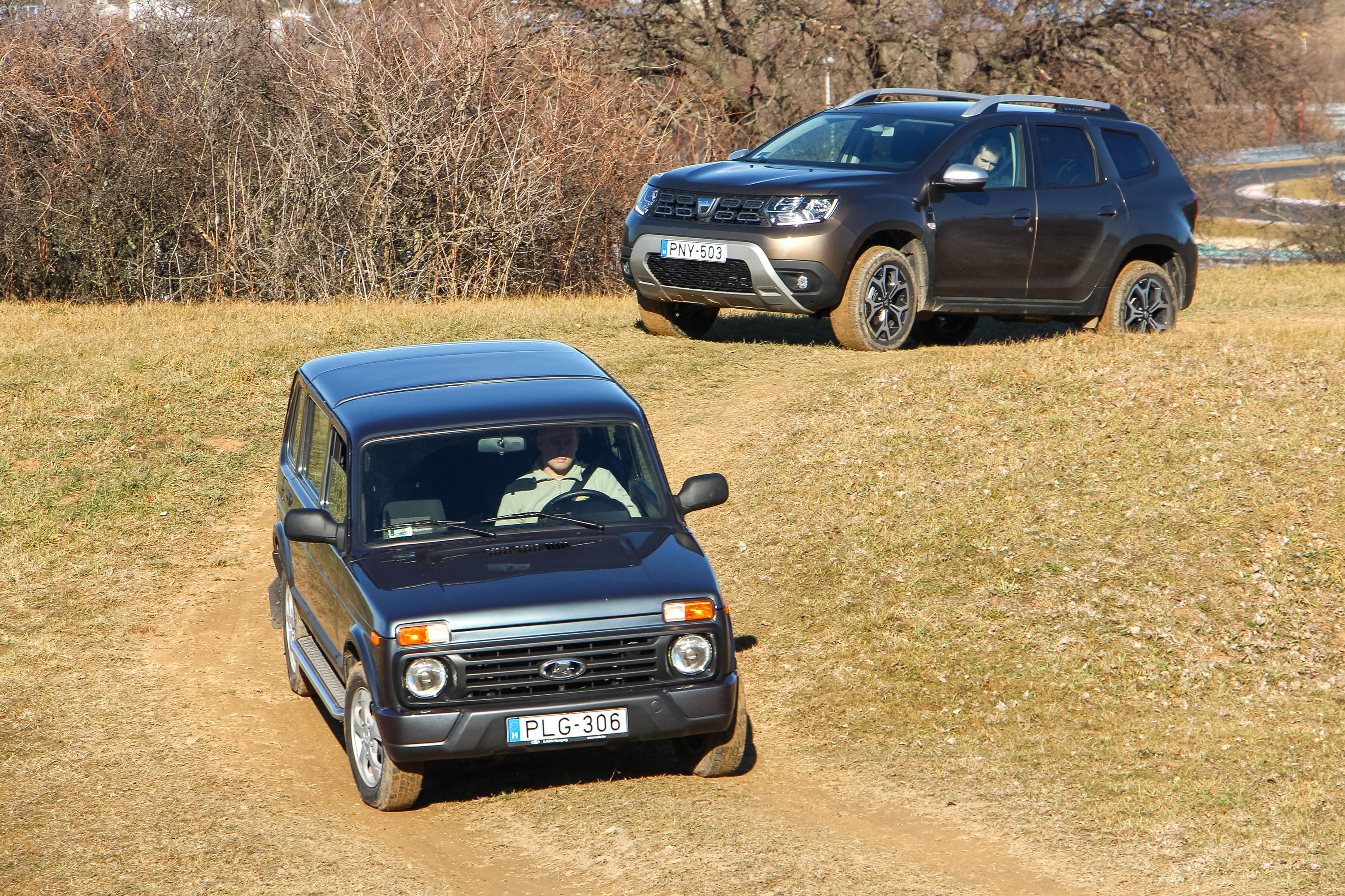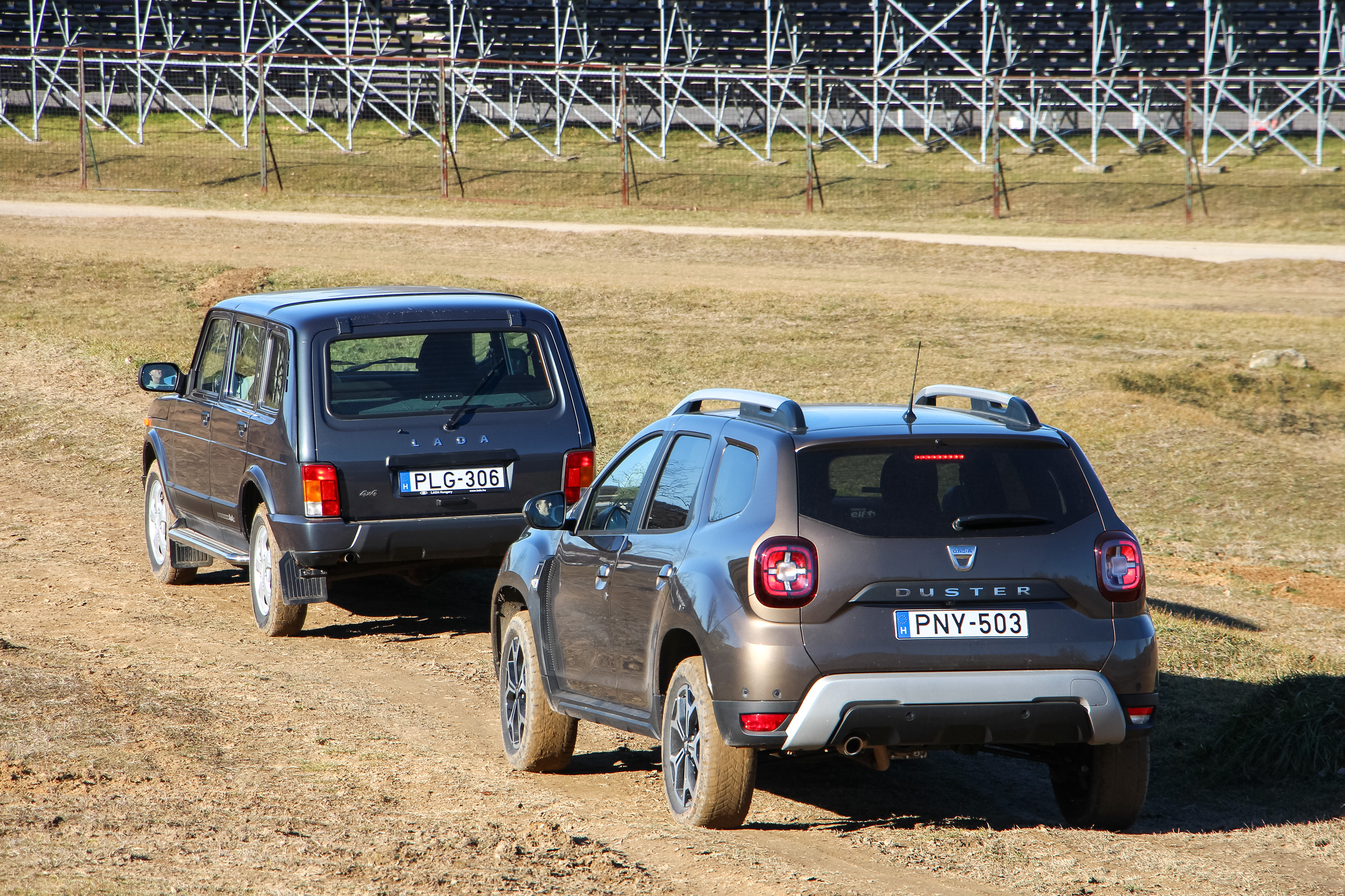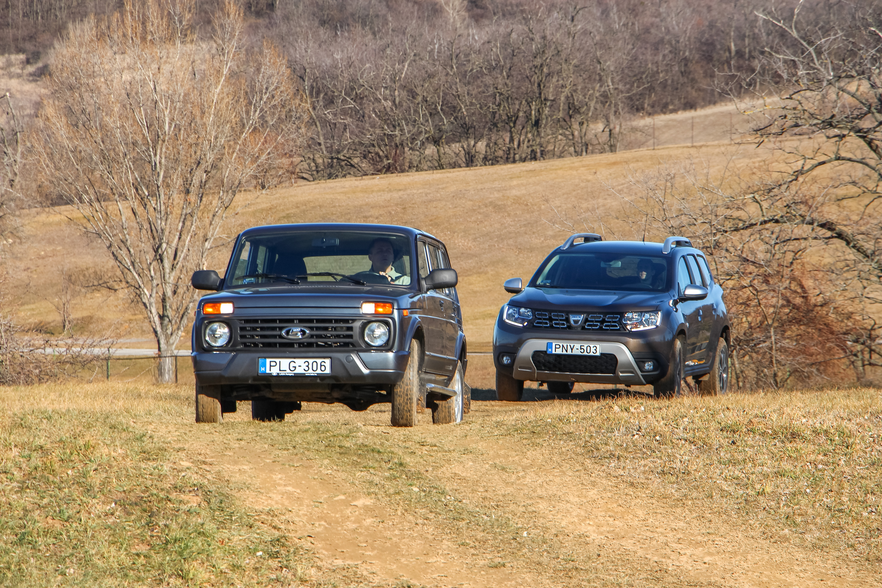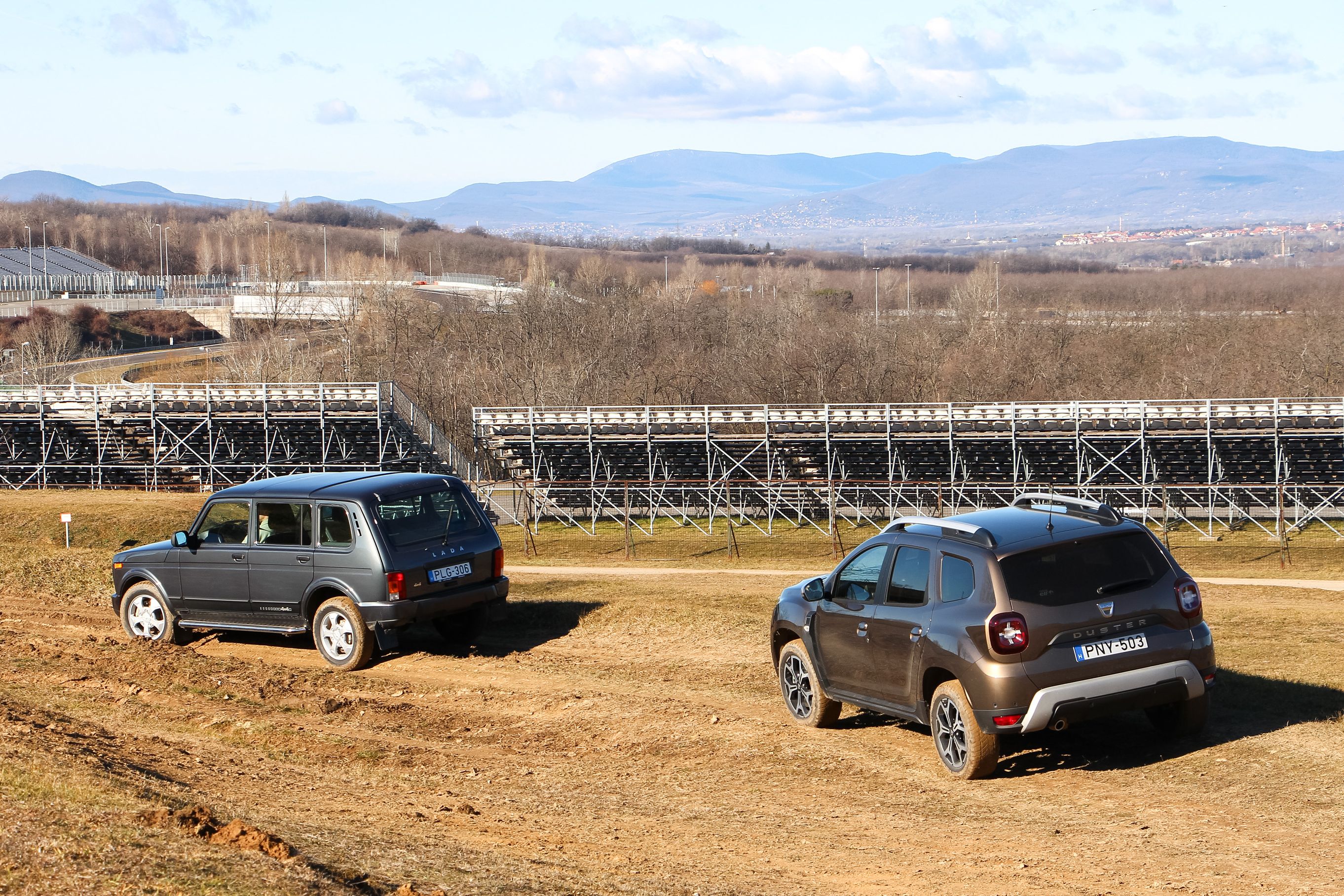 Tereppróbán az új Dacia Duster és a Lada 4×4 ötajtósa