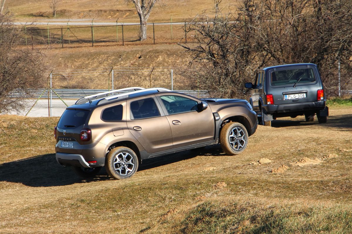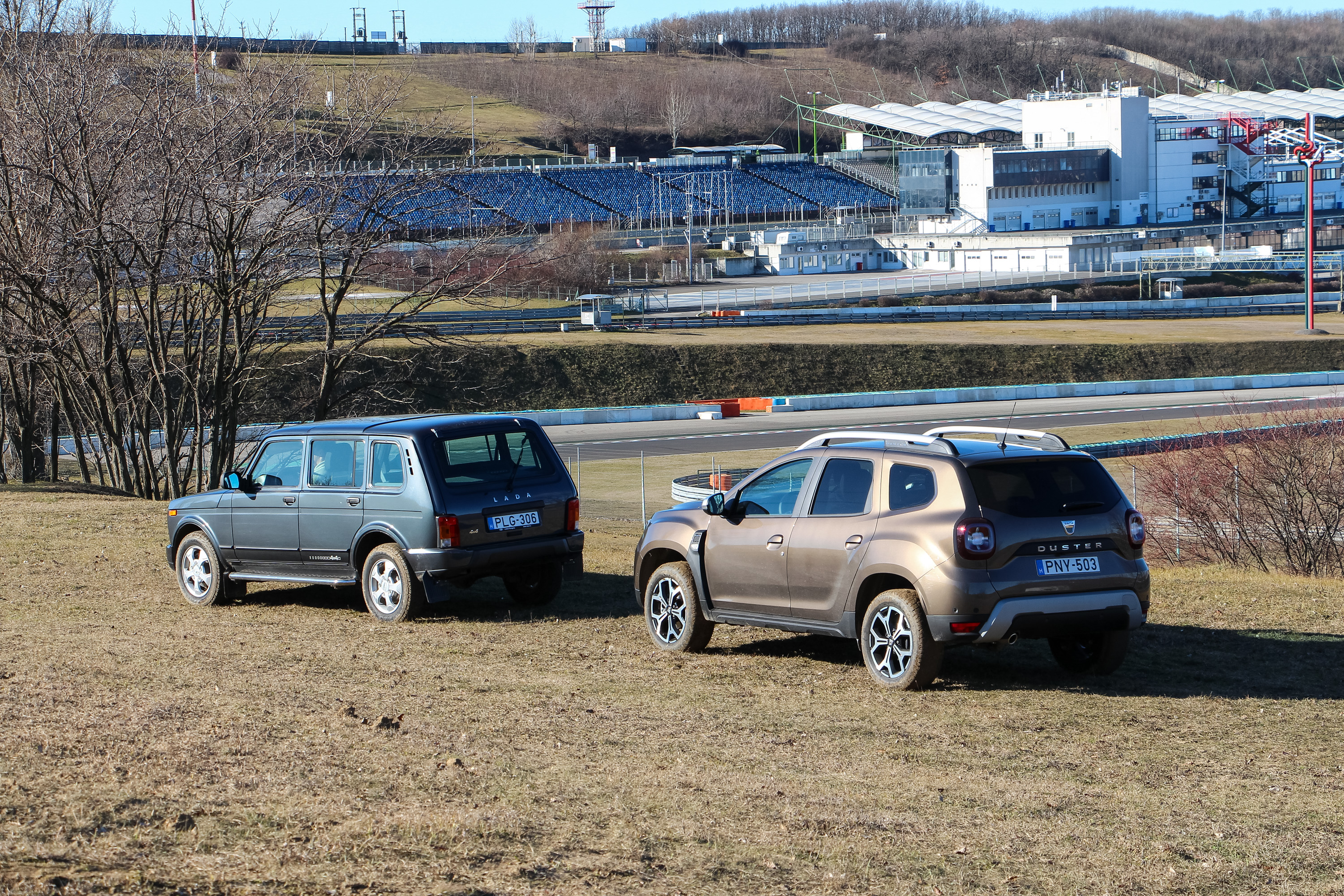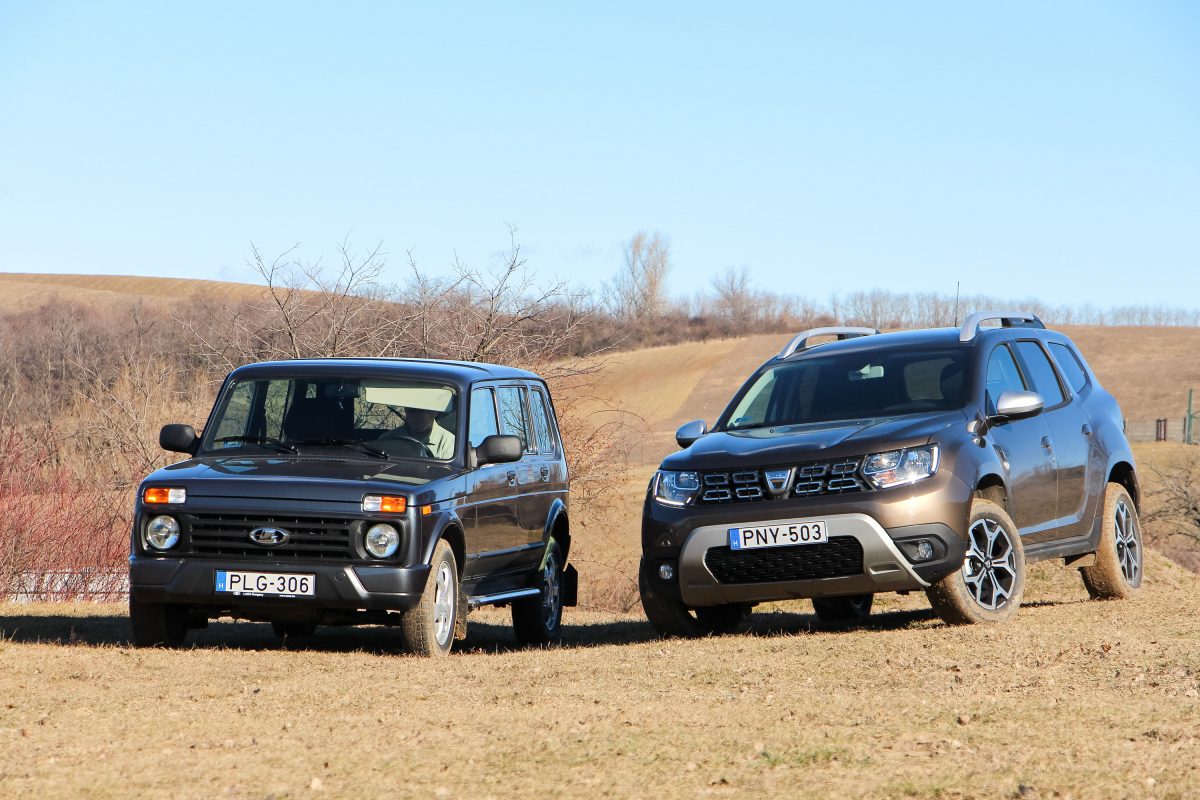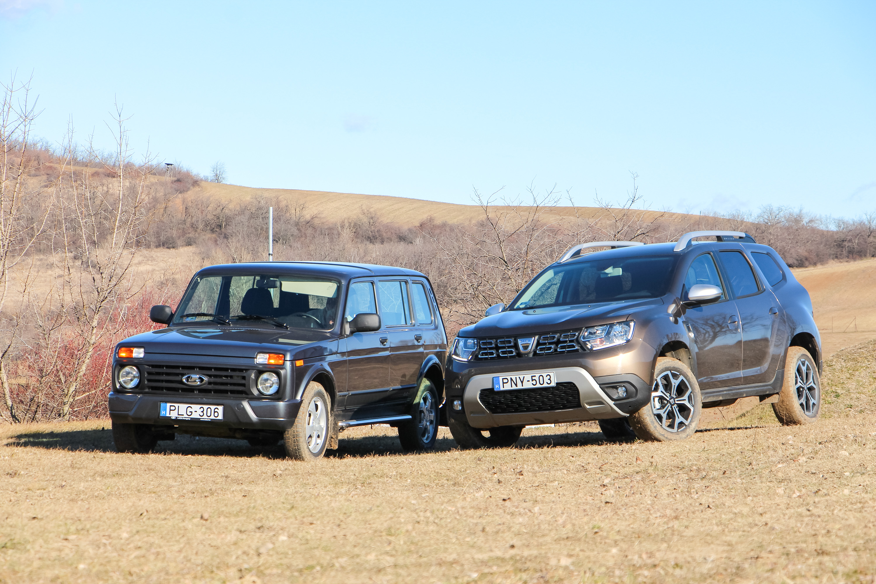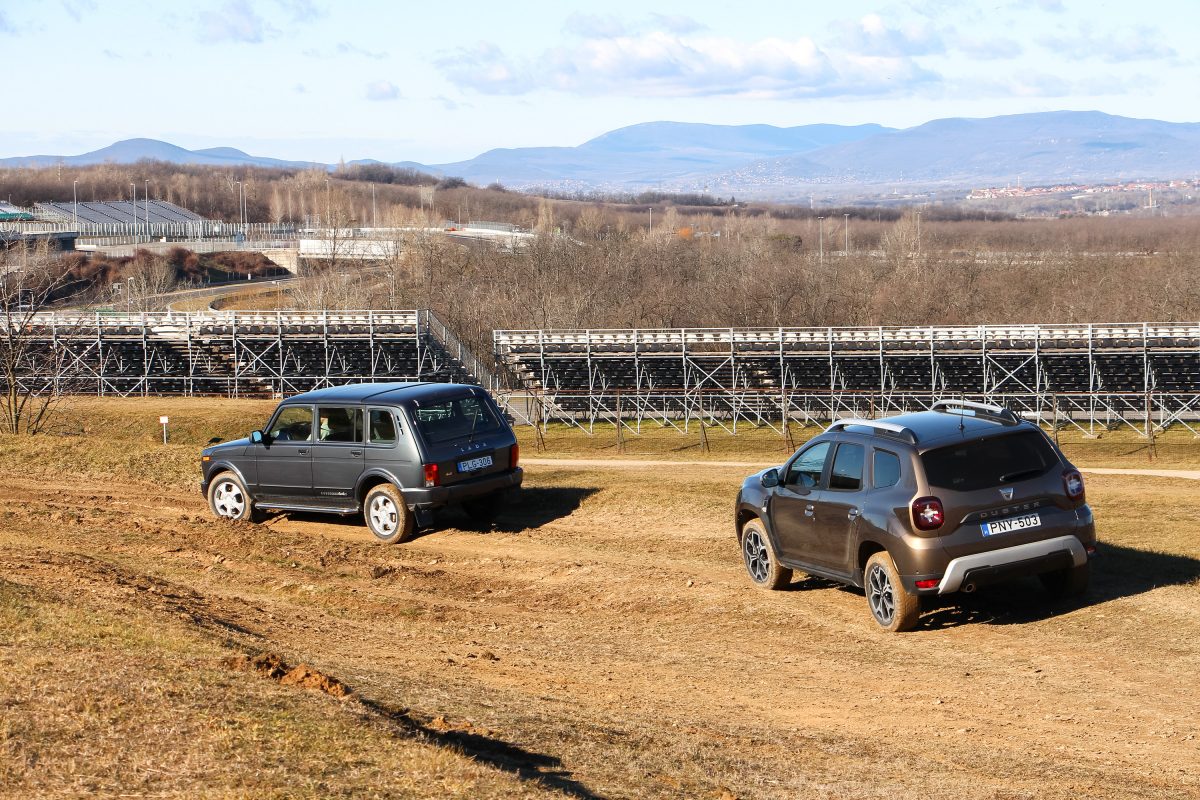 Tereppróbán az új Dacia Duster és a Lada 4×4 ötajtósa