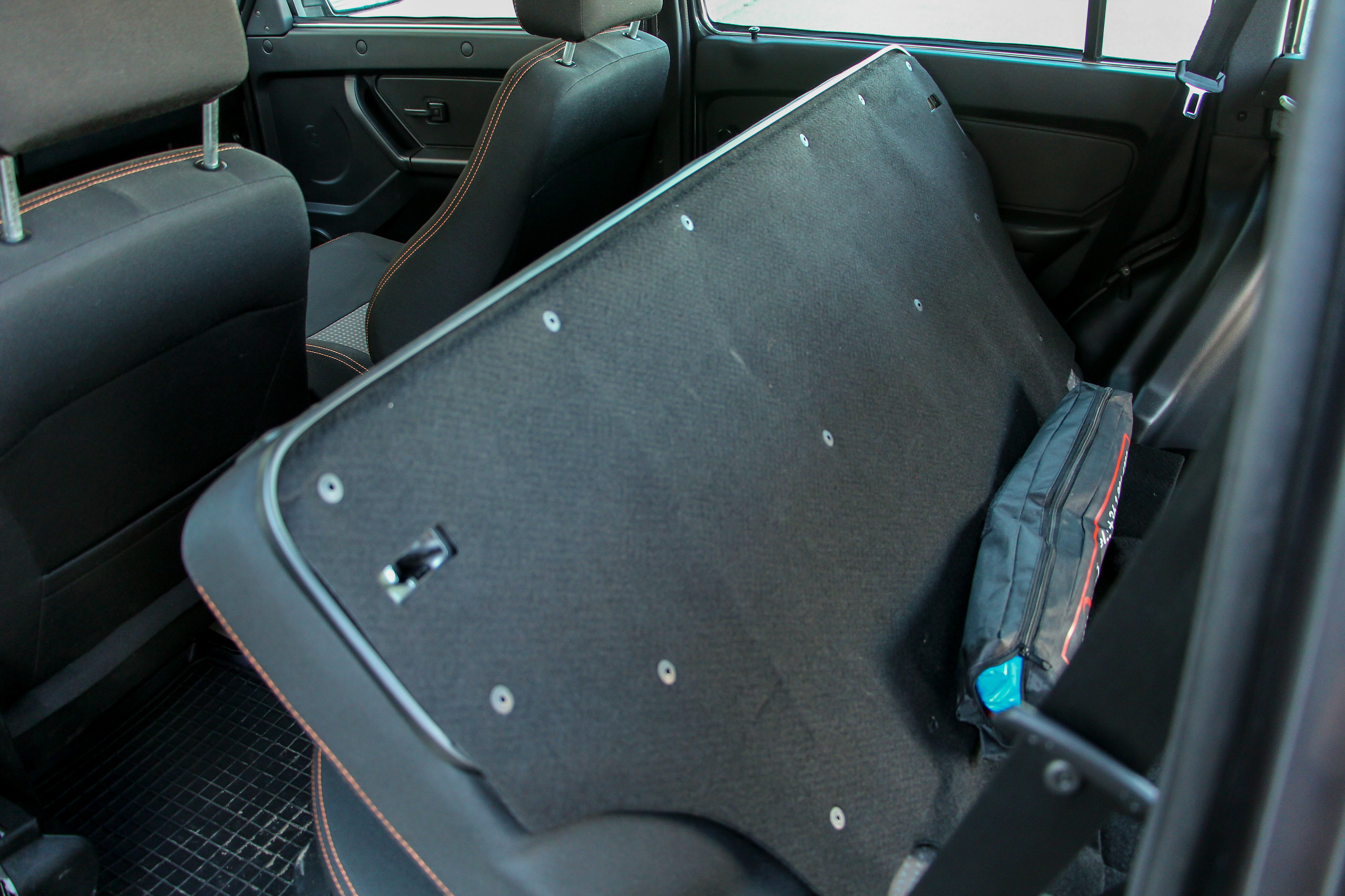 Nivánál is teljesen síkban lehet tenni a hátsó üléstámlát csak előtte az ülőlapot kell (középen van egy fül az ülőlapon) felhajtani és utána előredönteni a háttámlát. Így (egy kicsit több mint) 2000L csomagteret kapunk.