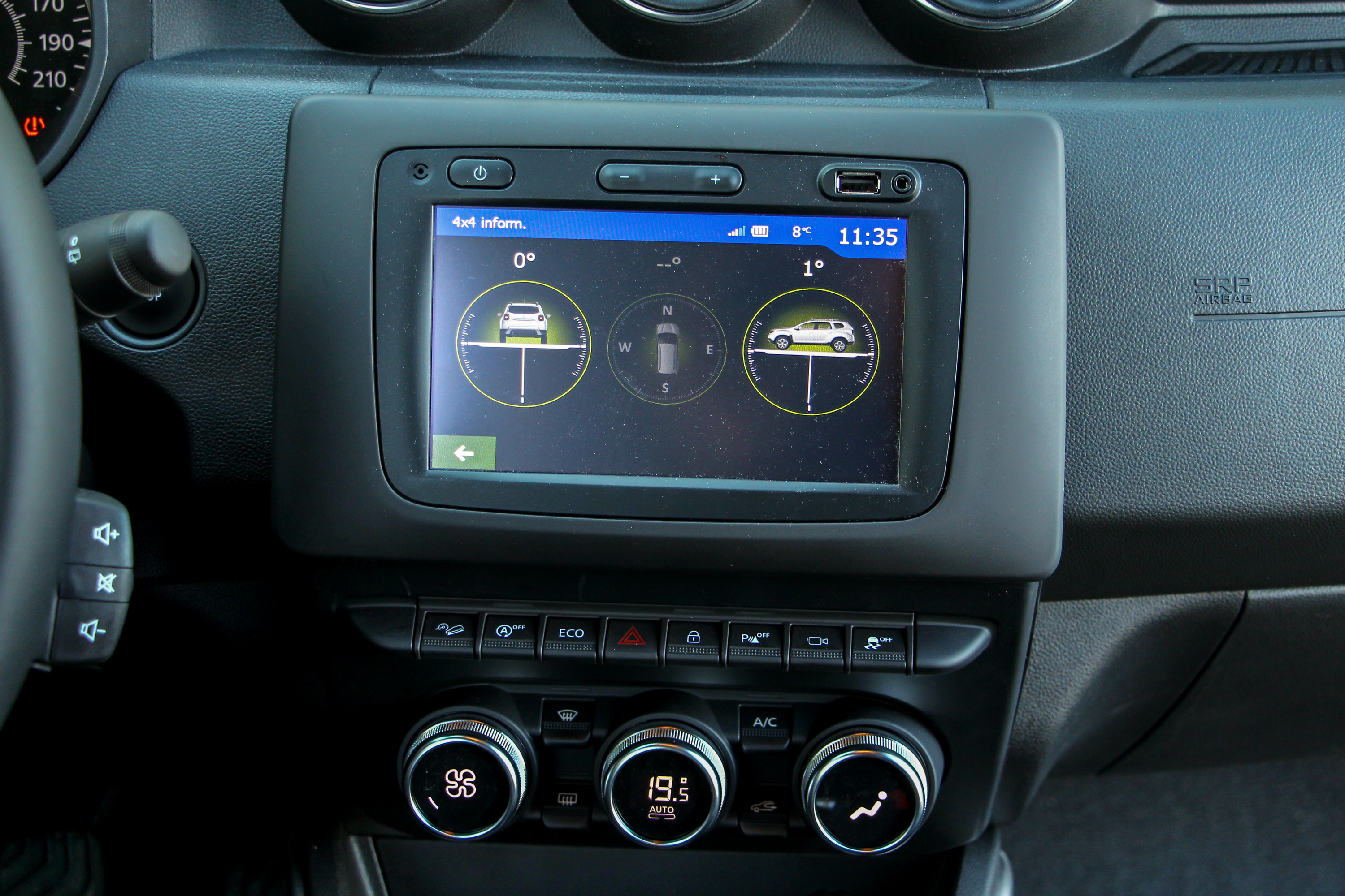 Az összkerékhajtás némi magyarázatot követel, ugyanis színházat bőven kapunk: forgókapcsolóval választhatunk 2WD (csupán első), automatikus és "fix" összkerékhajtás között. A rendszer viszont olyannyira bolondbiztos, hogy szükség esetén a 2WD állásnál is megy hátra nyomaték (hihetetlen, de megnéztük, így van), ahogyan persze Autoban is, amennyiben pedig a Lock állást választjuk (ami nem egyenlő a Lada 4x4 valódi fix kapcsolatot adó, így közúton nem ajánlott káros zárásával), akkor egy kicsikét gyorsabban kapnak hajtást a hátsó kerekek. Mindez azonban szinte mindegy, a lényeges,inkább az, hogy ne verjük le az autó alját, ha pedig terepre megyünk, válasszunk ahhoz megfelelő abroncsot. A Lada ugyanis nem csak hajtáslánácával, hanem Pirelli Scorpion ATR abroncsaival is sokkalta inkább terepre való volt, mint a Dacia az ő kiváló téli, de nem terepre való Dunlop Winter Sport 5 gumijaival.