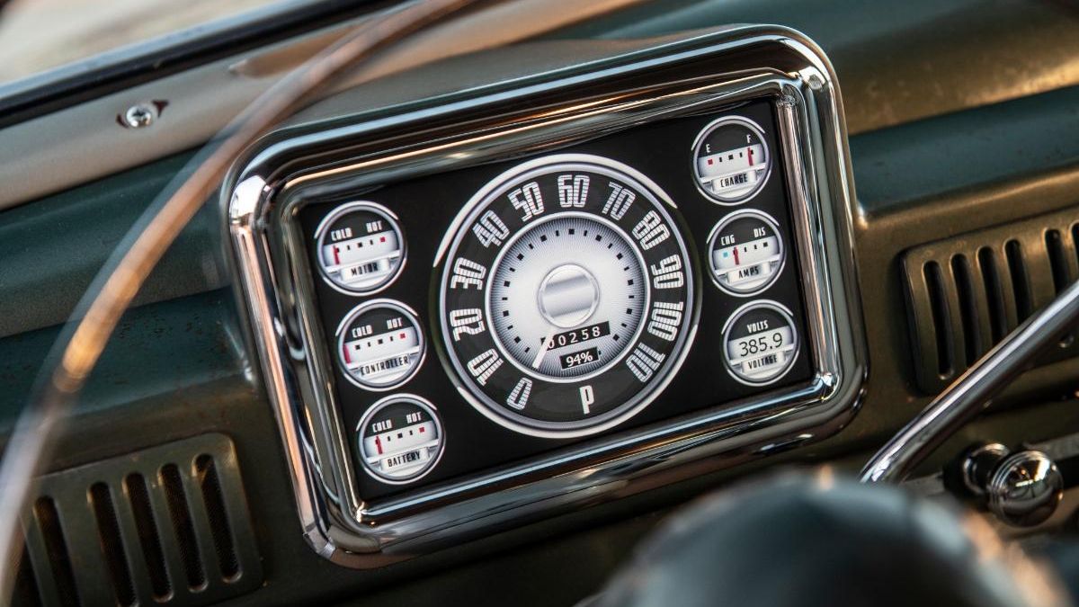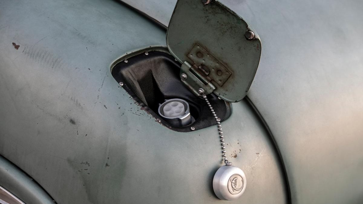 A motortérben V-motorra emlékeztető keretbe kerültek az elektromos hajtás elemei, a Tesla Supercharger csatlakozója a tanksapka fedele alá került, még a kupakja is korhű
