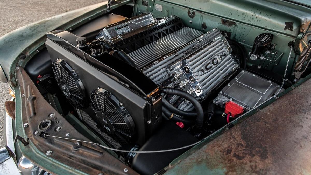 Külön mestermű, hogy a motortérbe az elektromos hajtás elemeit egy valahai V-motort mintázó keretbe építették, s a kábeleket is múltidéző csövekbe rejtették. A rendszámtábla mögé egy 125 Amperes CHAdeMO villámtöltő-csatlakozó, az eredeti tanksapka fedél alá pedig a Tesla Supercharger-konnektor került, így az Icon Mercury Coupéja nem csak mutatós és vagány, a legkomolyabb töltőhálózattal is kompatibilis.