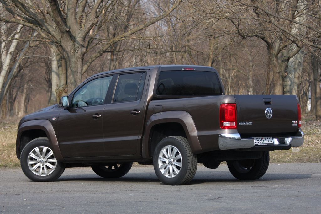 Vezetés közben a motor 1500 1/min fordulatszám alatt nem brillírozik, aztán megjön az erő, de valahogy 400 Nm-től többet várna az ember, hiányzik a turbódízelektől megszokott diszkrét hátba rúgás, ráadásul hamar elfogy a szufla, a nyomaték nem igazán széles tartományban van jelen. Ettől függetlenül a jól áttételezett sebességváltó miatt mind városban, mind autópályán kellemesen fut az Amarok, maga a hatfokozatú manuális váltó sem rossz, és a nem tolakodó menetzaj a komfortra is jó hatással van. A Volkswagen nagy hangsúlyt helyezett rá, hogy pickupja valóban személyautós érzetet keltsen, viszont laprugós kisteherautóval csodát tenni nem egyszerű – a terhelésre tervezett kemény, sprőd felfüggesztés miatt ráznak és dobálnak a platós kocsik, ami bizony nem kellemes. A németek ezt úgy torpedózták meg, hogy csak igény esetén adják a kemény laprugós Heavy Duty futóművet, és sztenderd a lágyabb Comfort hangolás, amely valamelyest csökkenti ugyan a terhelhetőséget, de az utasoknak sokkal többet ér a cserébe nyújtott kényelem. Persze, az Amarok sem tökéletes, de ezen a területen határozottan jobbnak tűnik ellenfeleinél, és a Volkswagen éppen erre számít, hiszen a divat miatt döntően személy-, és nem teherautóként használják ezeket a platós járműveket.