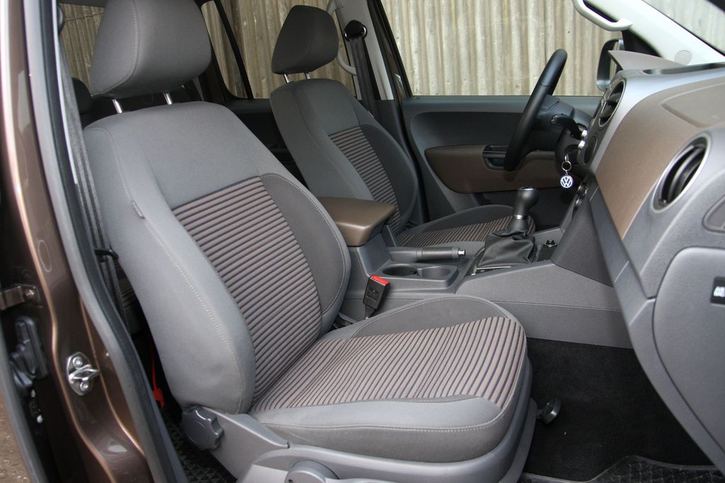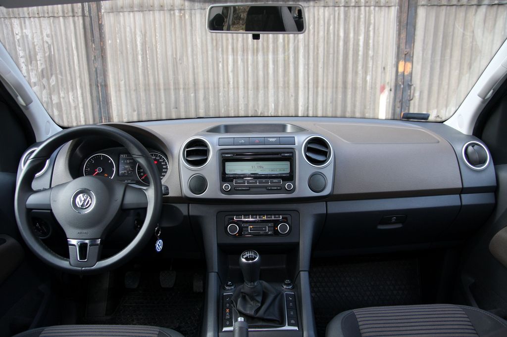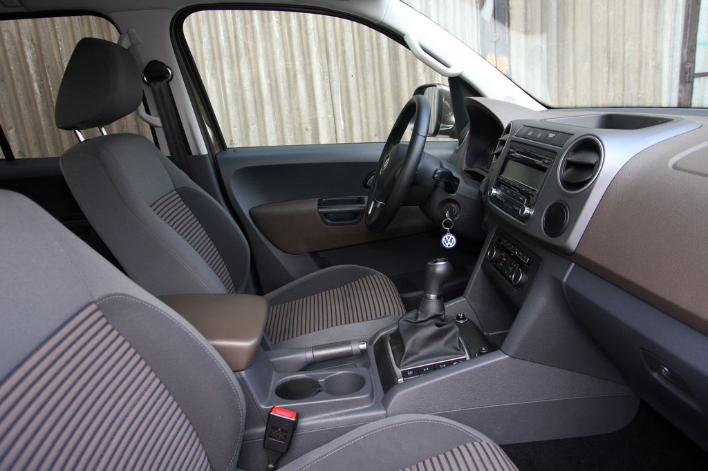 Megszokott Volkswagen-műszerfalat kapott az Amarok, a márkát ismerők akár becsukott szemmel is képesek lennének tájékozódni. A műanyagok nem különösebben puhák, de egy-két illesztési pontatlanságtól eltekintve inkább a tisztességes kidolgozás említhető, mint a kevésbé igényes anyagválasztás. Összességében amire a konkurencia képes, azt a nívót a Volkswagen is hozza