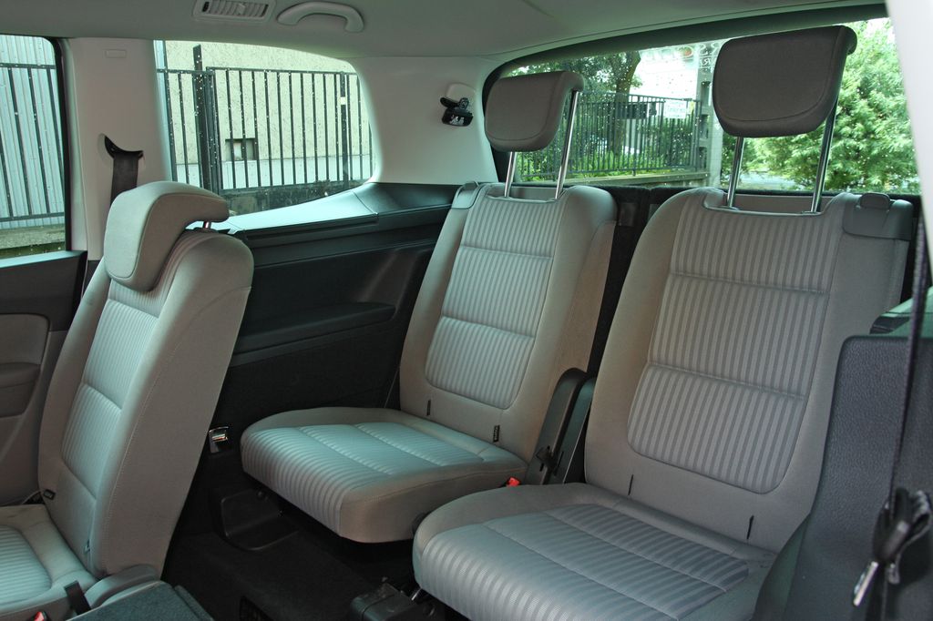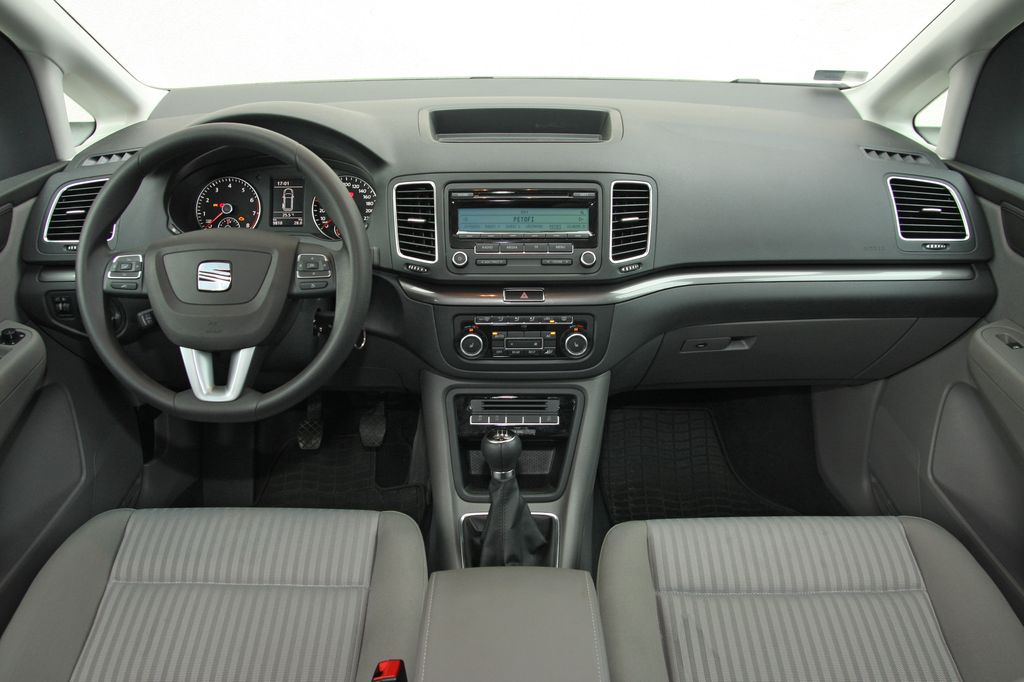 Az Alhambra alapváltozata talán az az autó, amit fotó és közelebbi ismeretség nélkül, pusztán műszaki adataival talán még a legfőbb célközönségnek, azaz a nagycsaládosoknak sem lehetne eladni. „Közel 5 méteres hossz, 1,4-es motorral? Jönnek itt 150 lóerővel, turbóval és kompresszorral? Meg 7 ülés és használható méretű csomagtér? Ne szédítsenek!” - mondhatják az érdeklődők, aztán a személyes találkozás már jóval meggyőzőbb, a kellemes vonalak egészen jól palástolják a méreteket, amelyek azonban teljesen valósak, s az alapvetően hasáb-forma miatt a beltér űrtartalma is gigászi. Nem kérdés, hogy elöl akár 2 méteres felnőttek is nappaliban érzik magukat, a második üléssorban a különálló, tologatható, szabályozható támladőlésű üléseken szintén jól el lehet férni, és sokak meglepetésére a harmadik üléssor sem büntetés. Egyedül az utóbbi székek pozíciója nem változtatható. Igaz, ez nem is nagyon hiányzik: még a lábhely is elegendő a 180 cm-es átlagtermettel, az ülés méretével sincs gond, továbbá még 7 ülés mögött is egészen használható méretű, 267 literes csomagtér marad. Jó pont, hogy a kalaptartó 5 és 7 üléses helyzetben is elhelyezhető, és ki-be emelése is viszonylag könnyű.