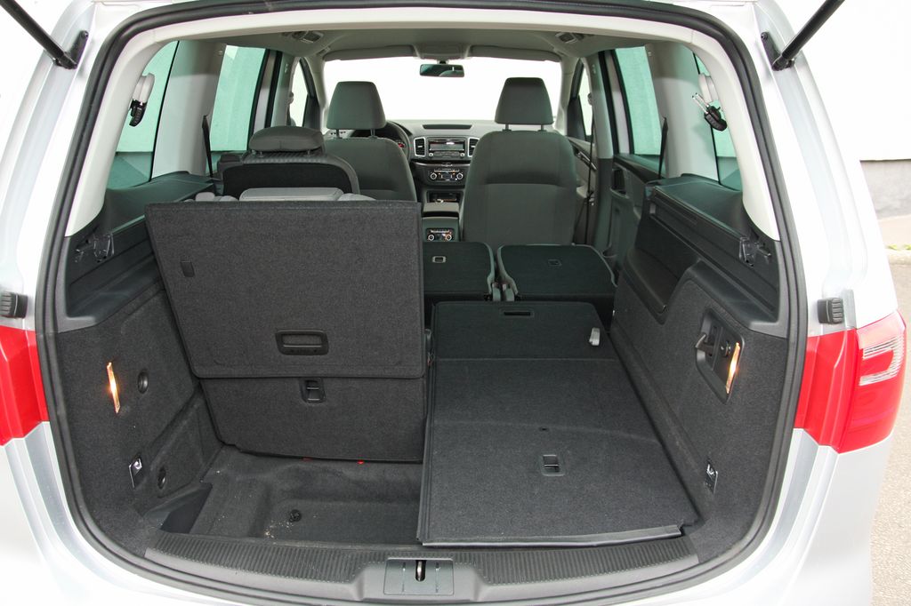 A Style felszerelésű Alhambra csomagterébe krómozott rakományrögzítők kerültek, de fontosabb, hogy az ülések hajtogatása egymozdulatos. Alapos világítás, 12 V-os csatlakozó és szatyor-akasztó a csomagtérbe, pohártartó és fedeles rekesz egyaránt jutott a leghátsó utasoknak is. A 218 ezer forintért rendelhető harmadik üléssor nélkül (vagy annak padlóba hajtásával) is óriási, a hátsó ülések ledöntésével akár 2,5 méteres, azaz hangárnyi a raktér. A bő kétméteres hossz így is megvan, de az igazán hosszú tárgyakhoz az első utasülés támlája is lehajtható. Így az Alhambra bizony komolyabb méretű árukészlet utaztatására is képes – utóbbinak nem, de a sofőrnek, vagy az autóban ülőknek sokat számít, hogy nem is rossz menetkomforttal.