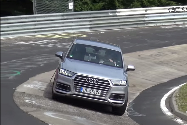 Vezettük már az Audi Q7 legerősebb dízelét, amely csak átmenetileg szerepel a teljesítménylista élén. Hamarosan érkezik a szintén gázolajos SQ7, amelynek V8-as motorja nagyjából 400 lóerőt fog teljesíteni. Nem kevés ez, az alábbi videón is jól látszik, hogy elég egy apró hiba és máris leesik az autó az útról. [BANNER type="1"] A Nürburgringen köröző tesztpilótának annak ellenére sikerült odacsapni az autót a korlátnak, hogy jelentős fogyókúrán esett át a luxus SUV. Nem csoda, egy ekkora méretű és tömegű jármű nem versenypályára való, jóllehet a határon való autózást itt lehet a legbiztonságosabb körülmények között végrehajtani.