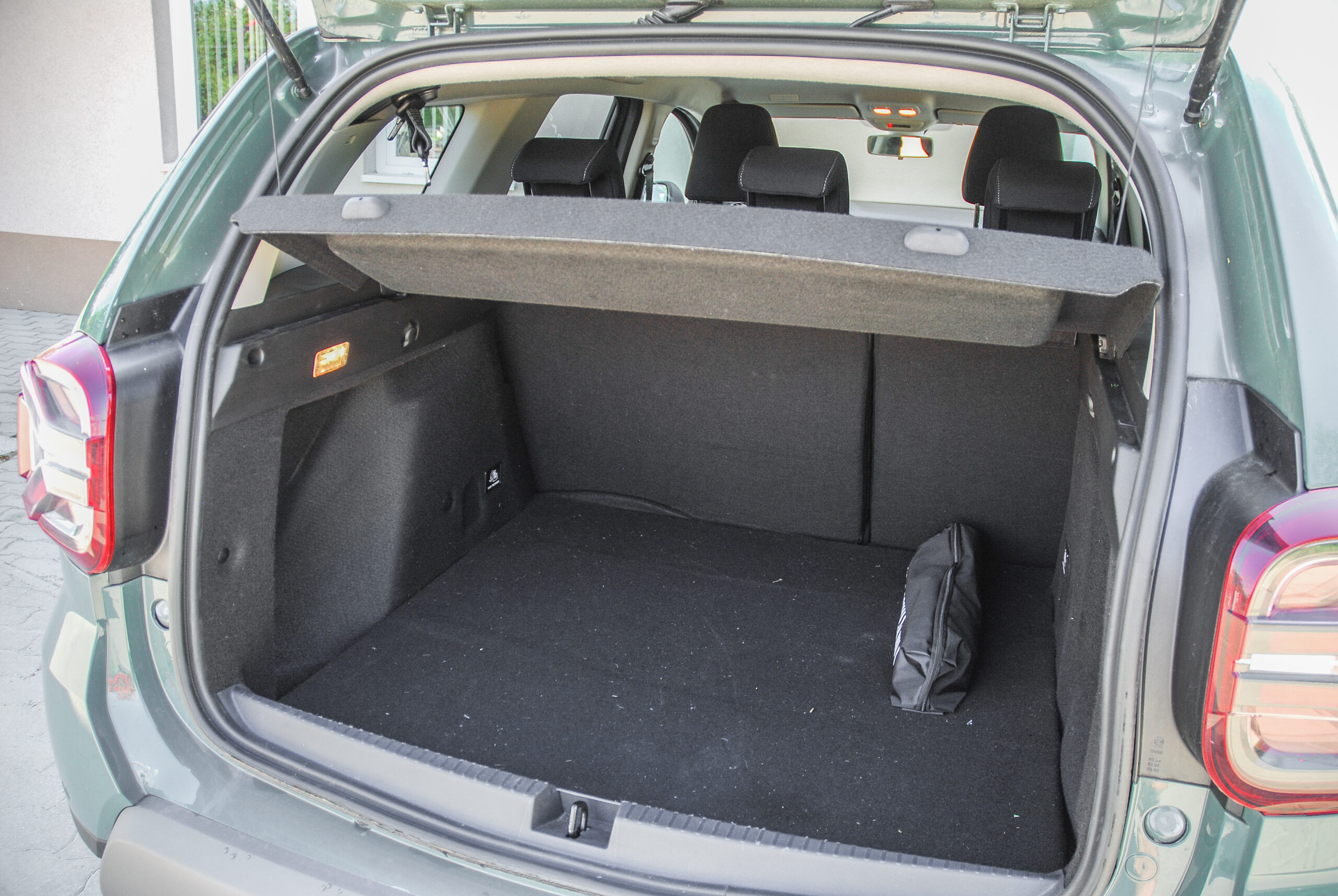 Az anyagminőség puritán mivolta miatt az érzet mindig "olcsóautós" marad, elsősorban a műanyagok tapintása végett, ám a burkolatok így könnyedén tisztíthatók és a strapát is jól tűrik. A helykínálat megfelelő, a modern, kompakt SUV méreteket könnyen hozza a Duster elöl és hátul is. Ehhez a csomagtartó 471 literje is hozzájárul, maga a nyílás meglepően magas, a kalaptartót is igyekeztek úgy pozicionálni a mérnökök, hogy minél nagyobb tárgyakat lehessen hátra pakolni. Ha még ennél is több kéne, akkor a 60:40 arányban dönthető ülésekkel akár 1504 literes tér is nyerhető.
