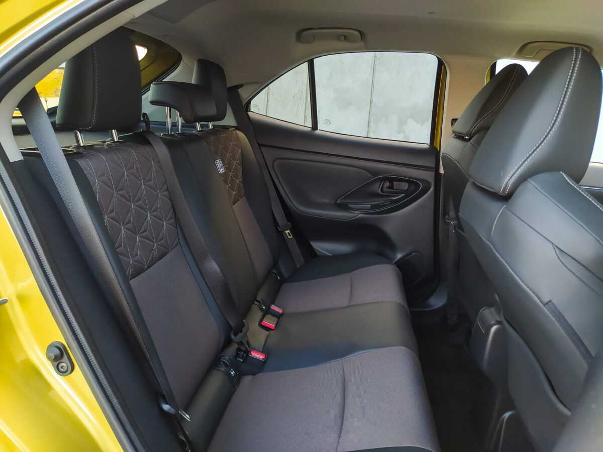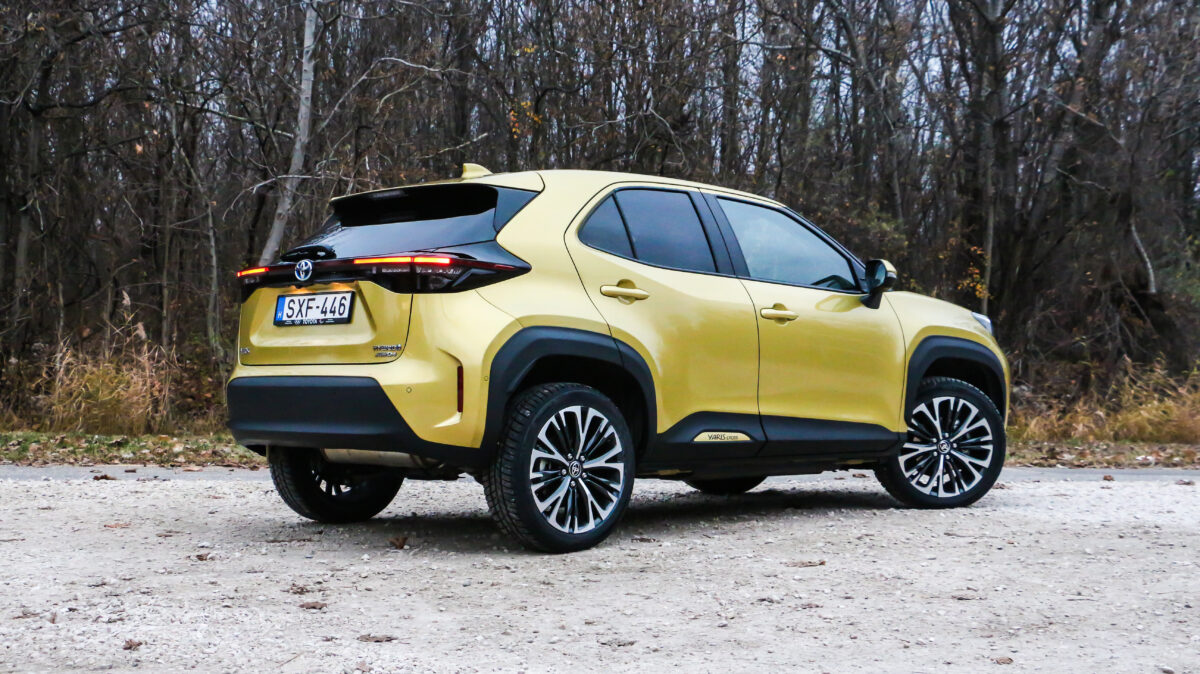 A 18 colos felnik már inkább a városi crossoverek stílusvilágát hozzák be az összképbe, a hátsó ajtók dekorbetétjein pedig ott virít a Yaris Cross felirat