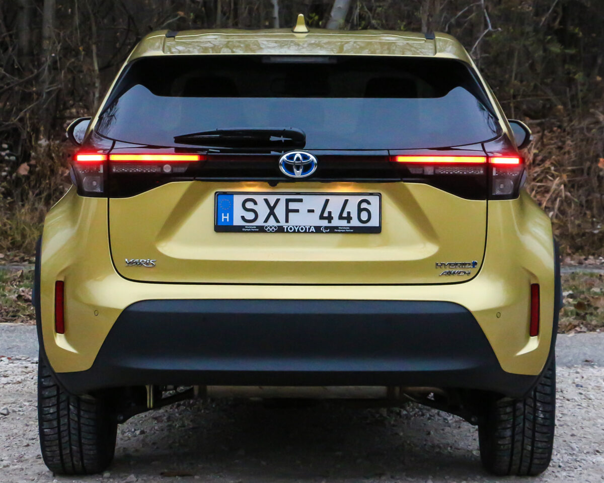 Maga a benzinmotor 1,5 literes, háromhengeres és szívó, ezt egészíti ki egy 80 lóerős villanymotor az első tengelyen és egy 5 lóerős, ám 52 Nm csúcsnyomatékkal rendelkező villanymotor a hátsó tengelyen. Mivel egy Toyota hibridről beszélünk, természetesen az e-CVT osztómű sem maradhat el a maga megszokott előnyeivel és hátrányaival. Ez a konfiguráció a 116 lóerős rendszerteljesítménnyel dinamikus megmozdulást ad úgy körülbelül 50 kilométeres óránkénti sebességig, utána viszont kicsit elfogy az erő, ezen természetesen a gyorsítás közben is változatlan fordulaton pörgő motor hangja sem segít. Ennek ellenére településen belül igen könnyű vele sietni, ráadásul óvatosan használva kényelmesen lehet vele 5-6 liter környékén autózni. Egyedül autópályán eszik sokat, ott a választott tempótól függően akár 7 liter fölé is mehet a fogyasztása, de fontos figyelembe venni, hogy ez még így sem nevezhető soknak.