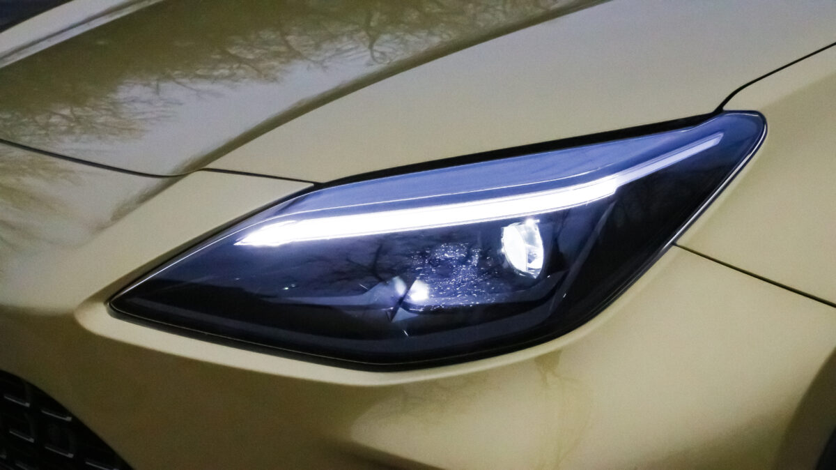 A fekete, középen összeérő lámpatestben szintén oldalanként egy-egy LED csík a helyzetjelző: ismét egy olcsó, de mutatós megoldás a Toyotától