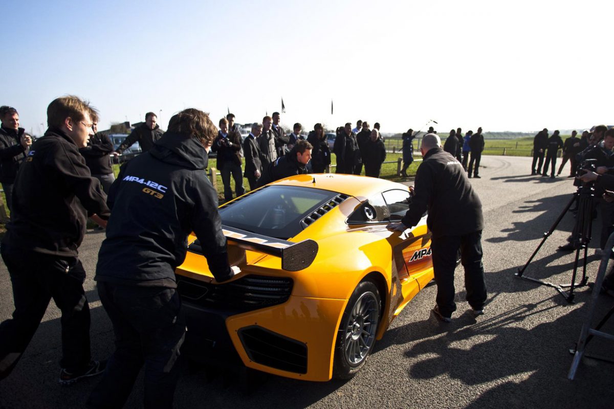 A McLaren és a CRS Racing szakembereivel alapított McLaren GT által épített első példány már most lefutotta első tesztköreit, természetesen nem máshol, mint az angol Silverstone versenypályáján. A csapat egyébként már most leszerződtetett egy tesztsofőrt, a 26 éves, portugál Álvaro Parente személyében. A McLaren GT projekt menedzsere, Andrew Kirkaldy szerint jövőre csapatukat már 6 tesztpilóta fogja szolgálni, minden bizonnyal közülük kerül majd ki versenyzőjük is. Az első teszt egyébként még inkább csak ízelítő volt a csapatnak és bemutatkozás a külvilágnak, a szimulátoros vizsgálatok után az első valódi köröket a projektet vezető Kirkaldy mellett a McLaren elsőszámú tesztpilótája, Chris Goodwin tette meg Silverstone-ban a 12C GT3-assal.
