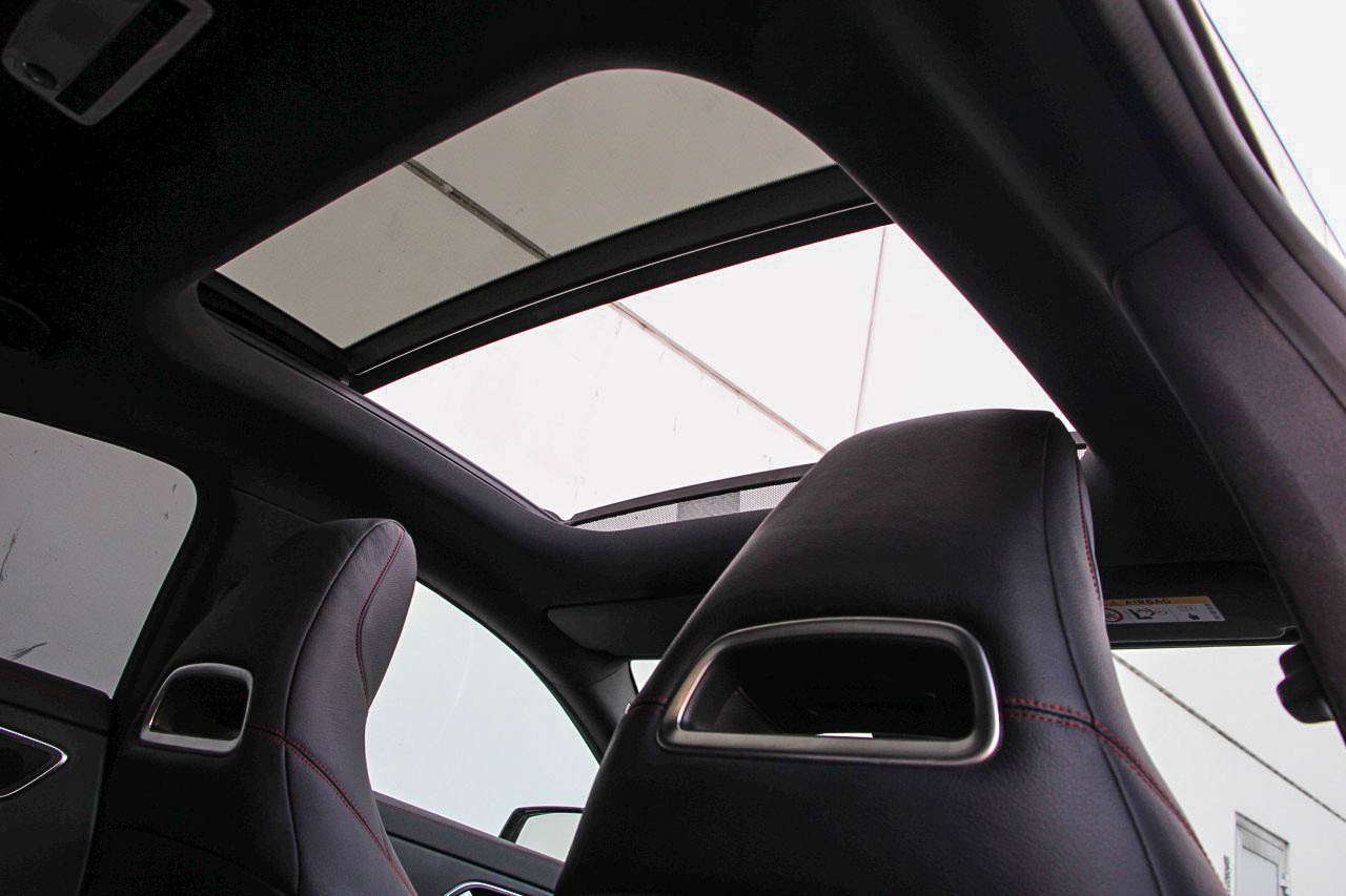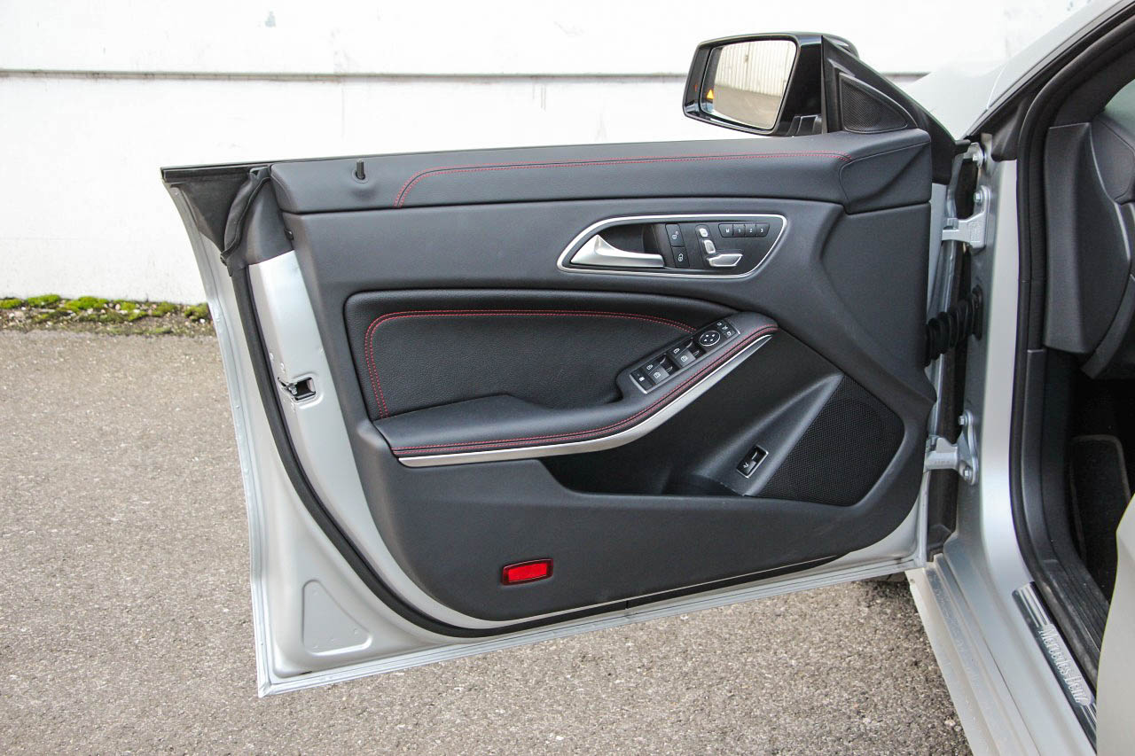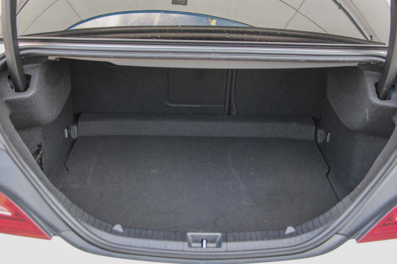 Világító küszöb, bőrbe csomagolt és Alcantara-betétes műszerfal, piros cérnás öltésekkel és mindehhez piros biztonsági övek. Van stílusa a CLA-nak, annyi bizonyos, és ez egy ilyen autóban bőven feledteti például a csomagtér szűk nyílását