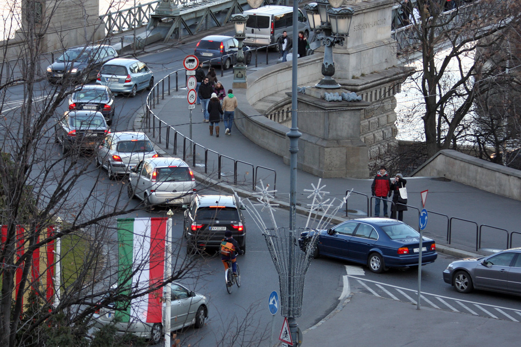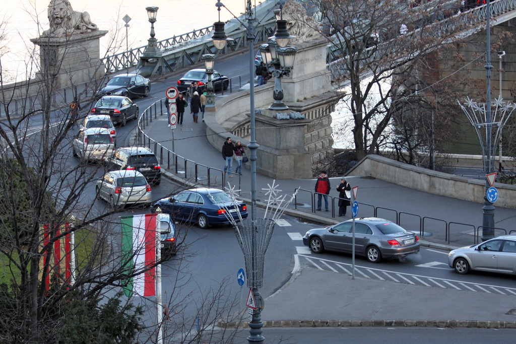 Budapest, a Lánchíd budai hídfője: a Clark Ádám téri csomópont "régen", 2006 előtt nem volt körforgalom - az átállásnál támadt is zavar bőséggel. De még mostanság is akadnak szomorúan vicces szituációk, pedig ez nem egy bonyolult, többsávos, balesetveszélyes ringlispil