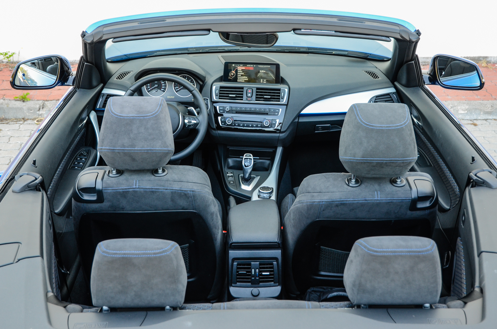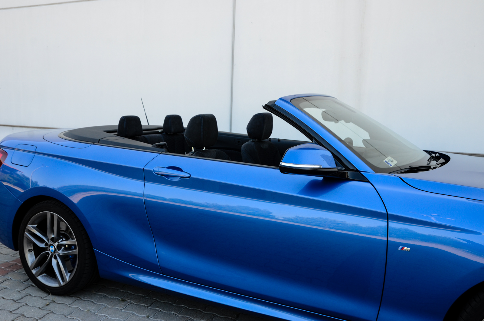 Az Estoril kék színnel és az M Sport csomaggal nem lehet mellényúlni egyik BMW-nél sem. A 2-es Cabrionak is baromi jól áll ez a párosítás