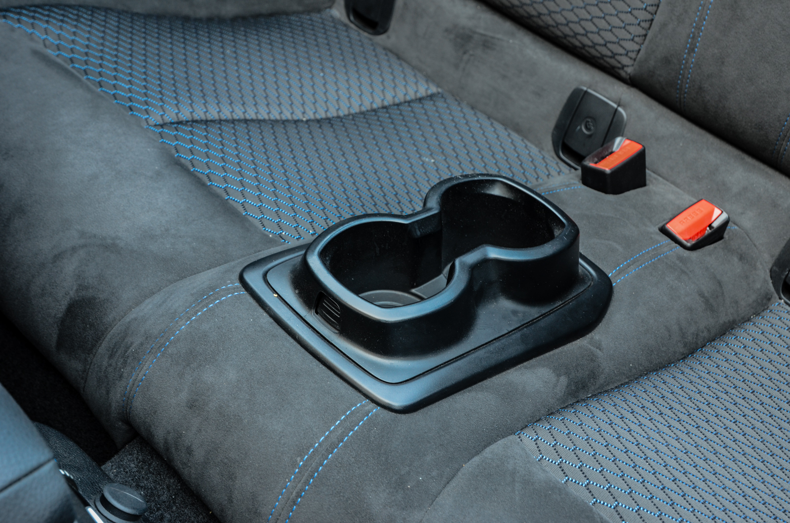Az első ajtózsebeken kívül elöl középen és az ötödik üléshelyen is találunk pohártartót, így összesen 6 fél literes flakon helyezhető el az egyébként négyszemélyes autóban