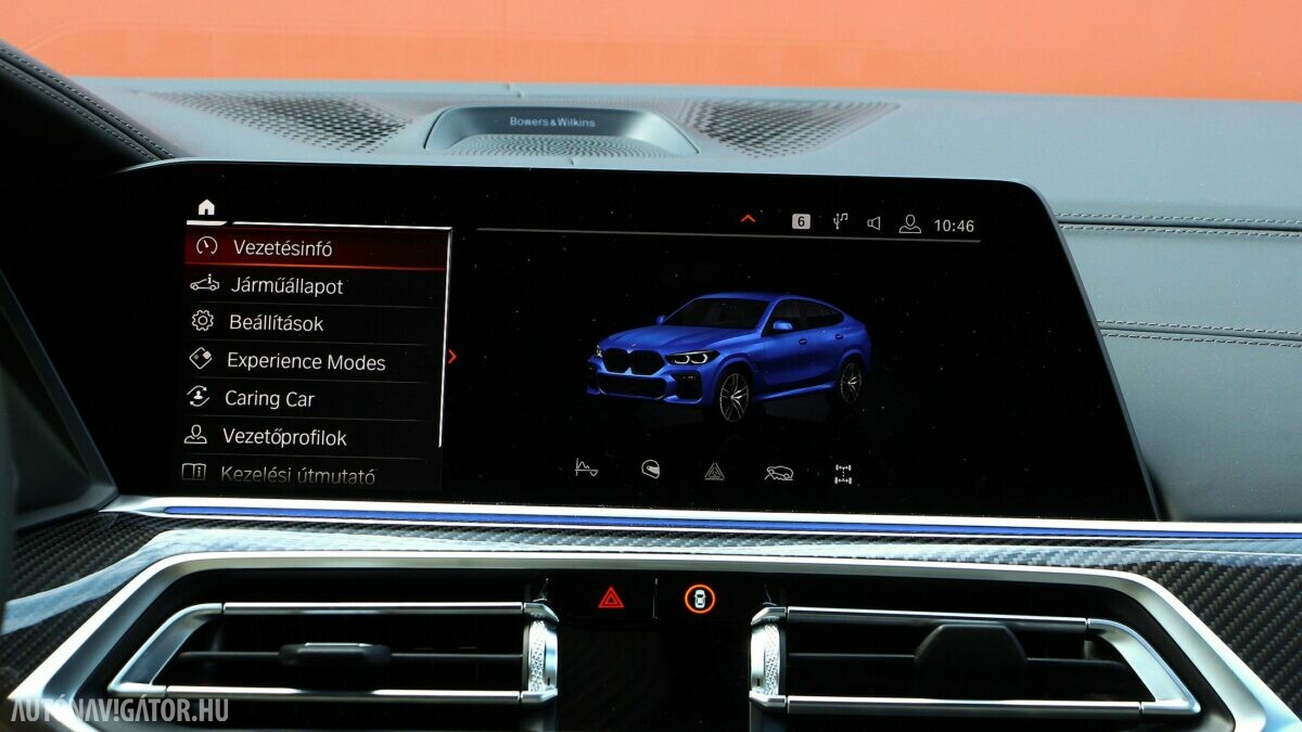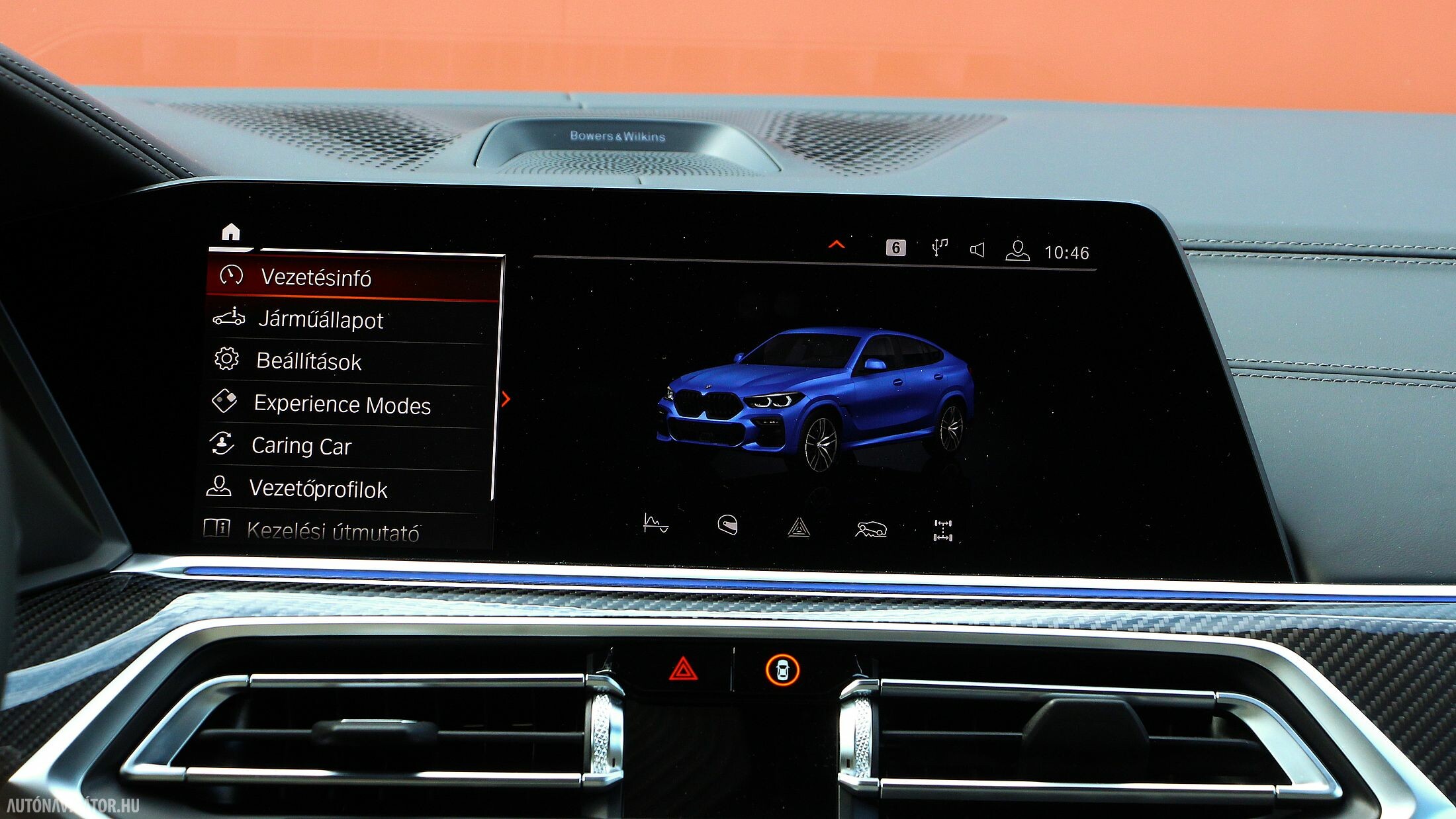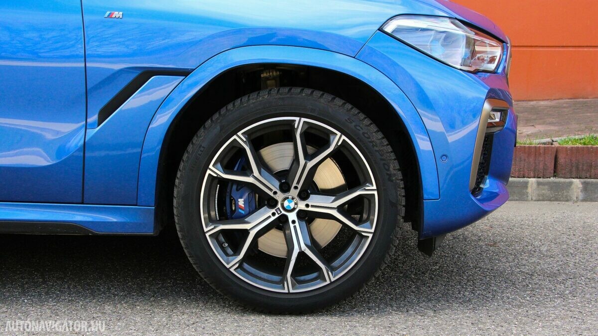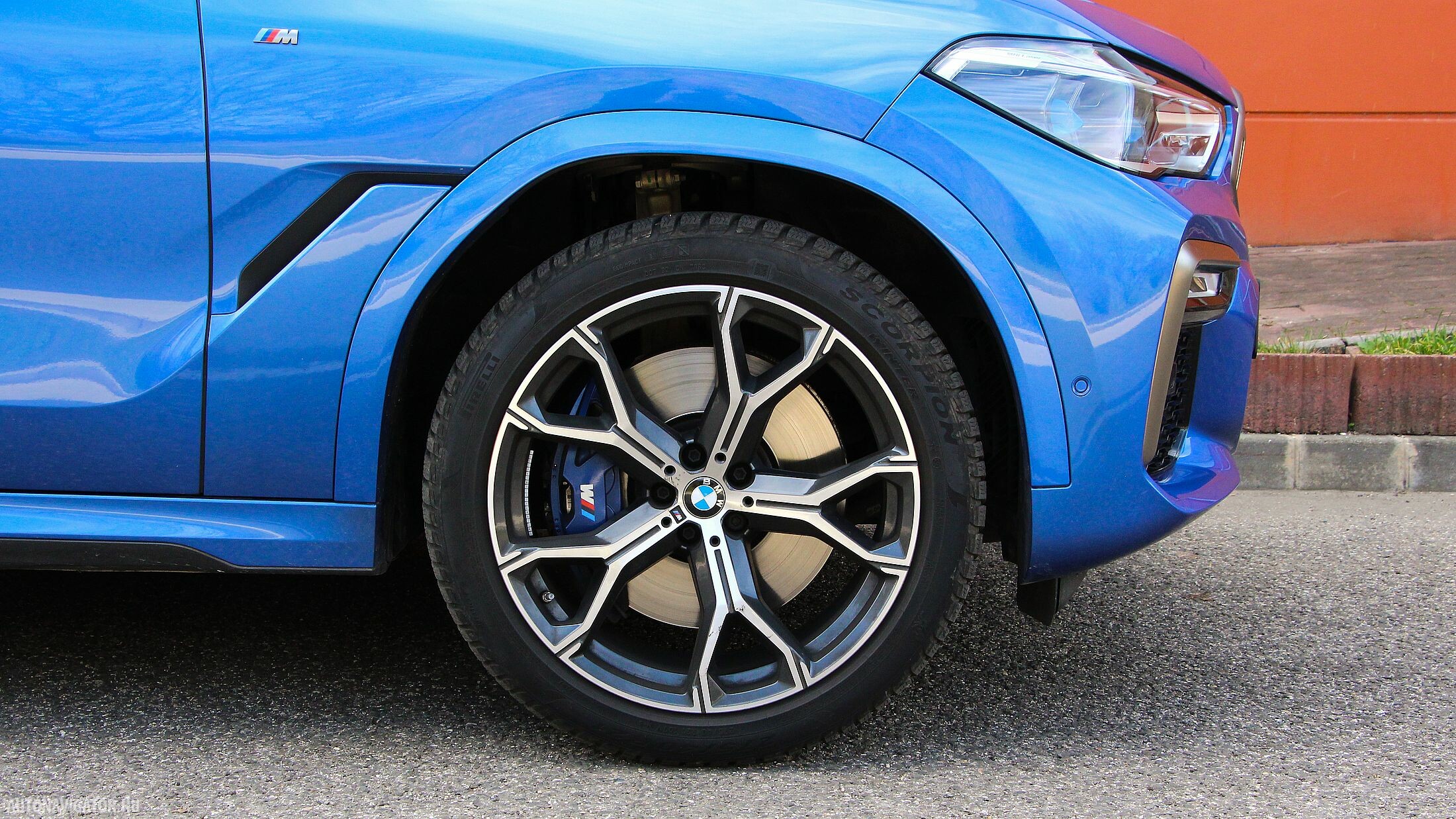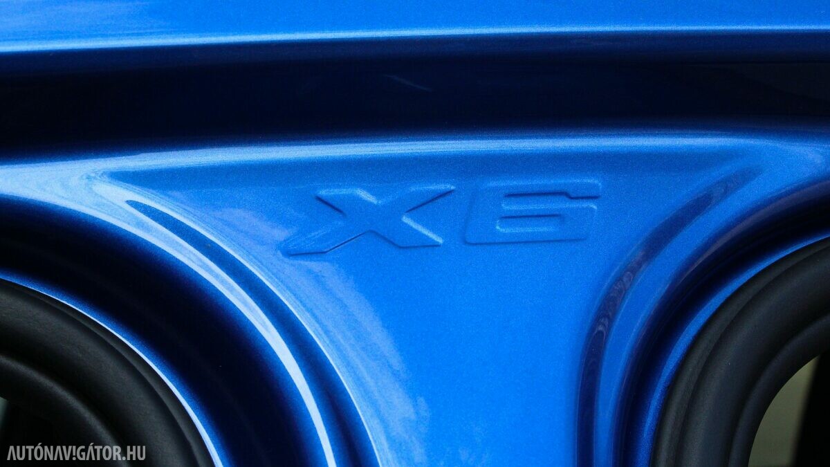 Viszont az aktív lamellák gyorsan elterelték a figyelmemet erről, hiszen érdekes látni, ahogyan nyílnak és záródnak, amikor leguggolsz az autó elé. Bár ott megérted, mit érezhetett Jónás, mielőtt lenyelte a bálna. Hátul szintén beérett a forma, az eleve széles (2004 mm) autót még termetesebbnek láttatják a keskeny hátsó lámpák. De az X6-nak mindene nagy, így a könnyűfém felnik is a 21 colos méretükkel, illetve a féktárcsák is majdnem akkorák, mint a fejem, ráadásul olyan hőséget árasztanak magukból egy-egy gyorsabb hegyi keringő után, hogy azzal egy kisebb lakást fel lehetne fűteni. És hát miért ne akarna az ember egy V8-as, 4,4 literes, két turbóval felvértezett masinával sportosan repeszteni? Mindjárt mondom, hogy miért nem!