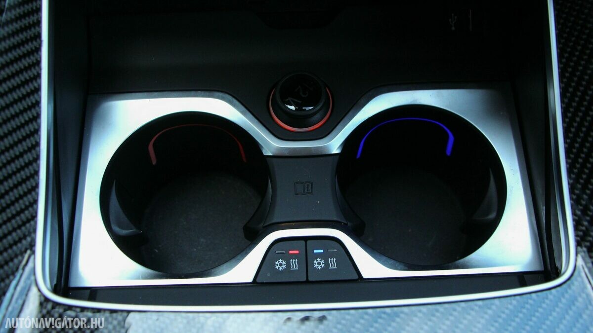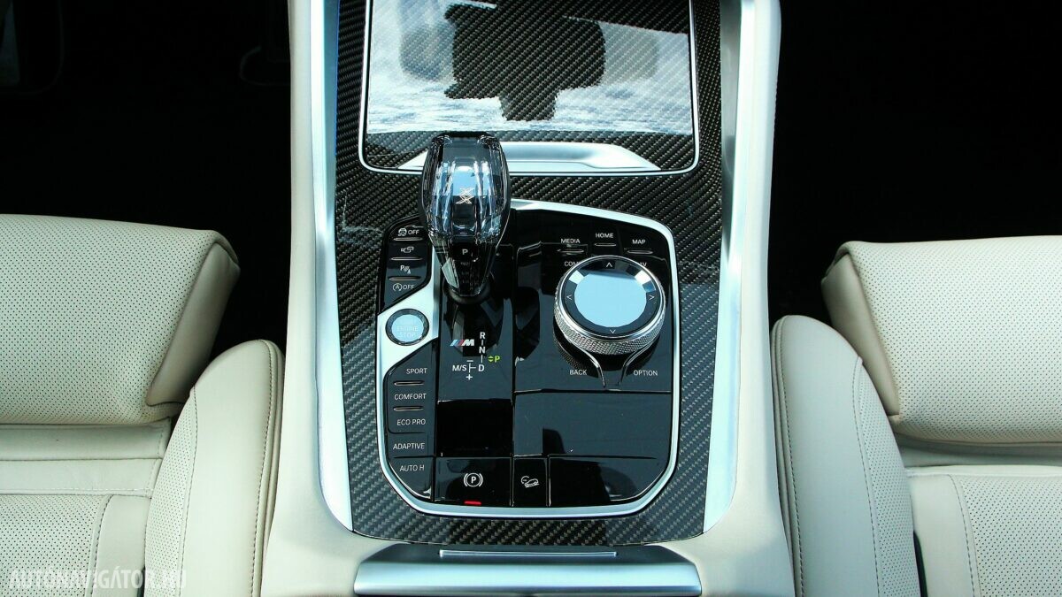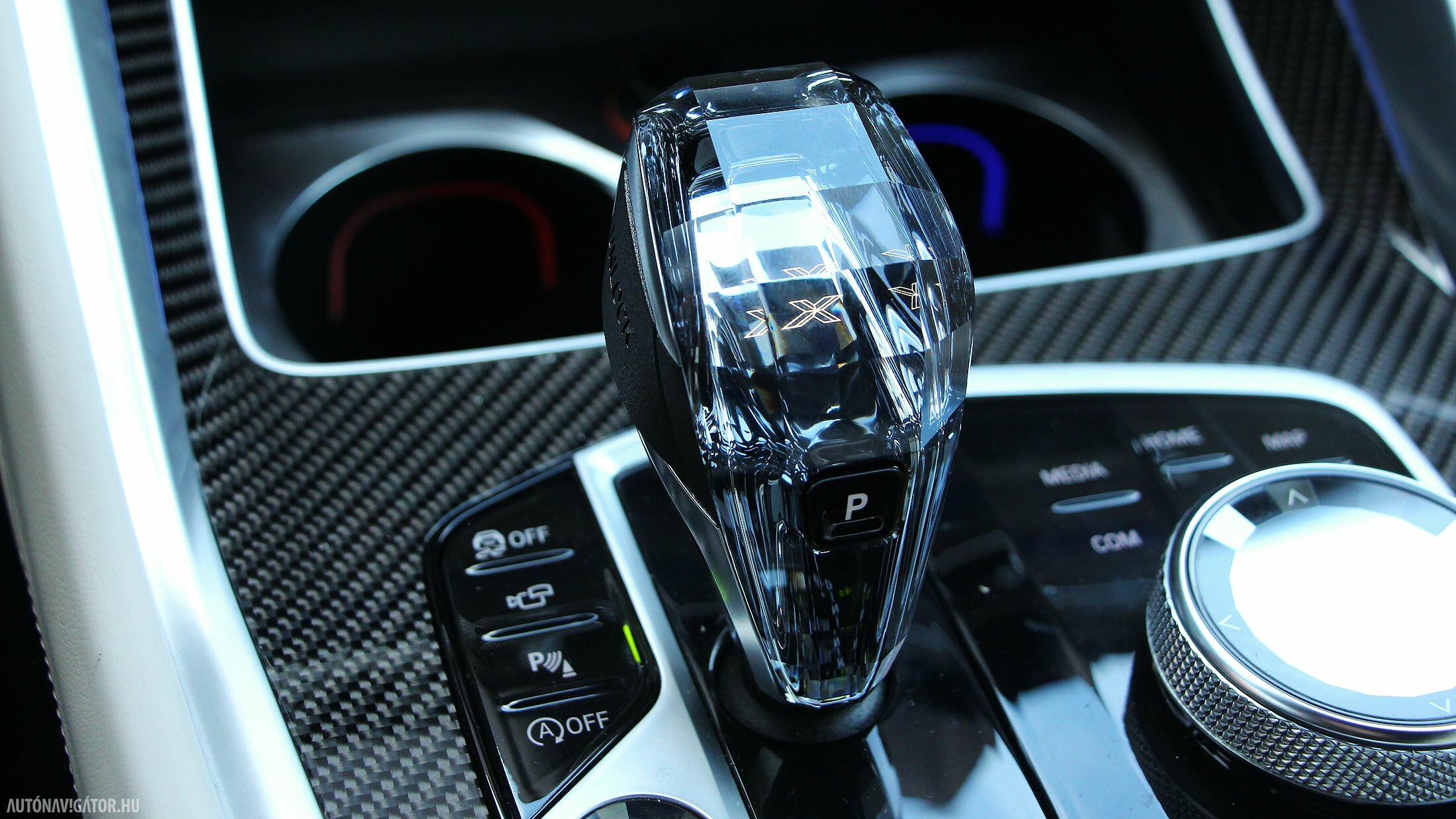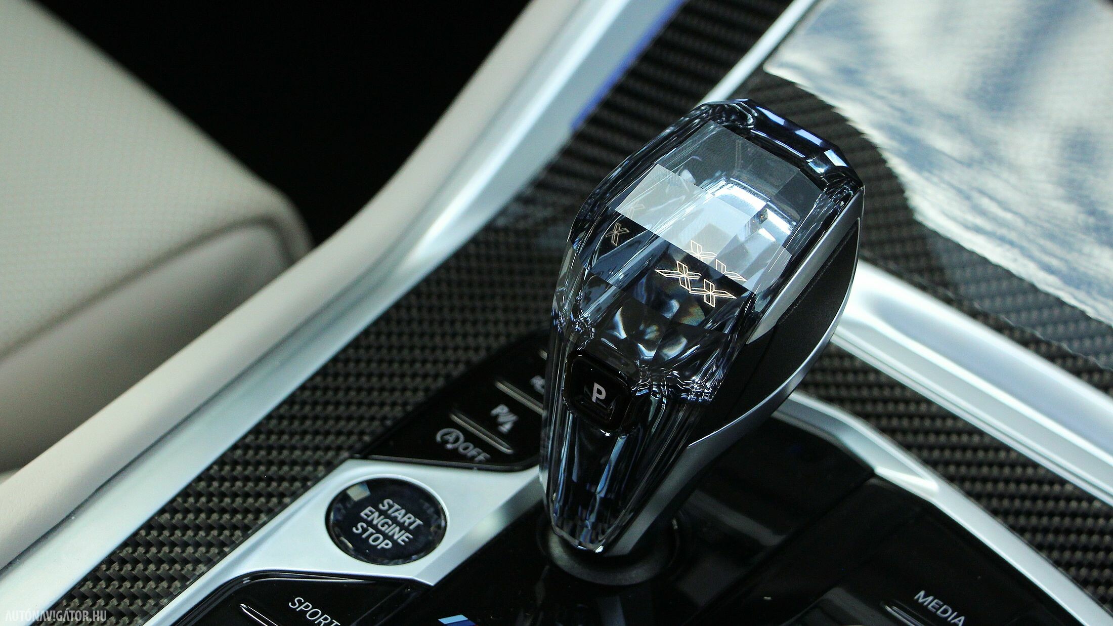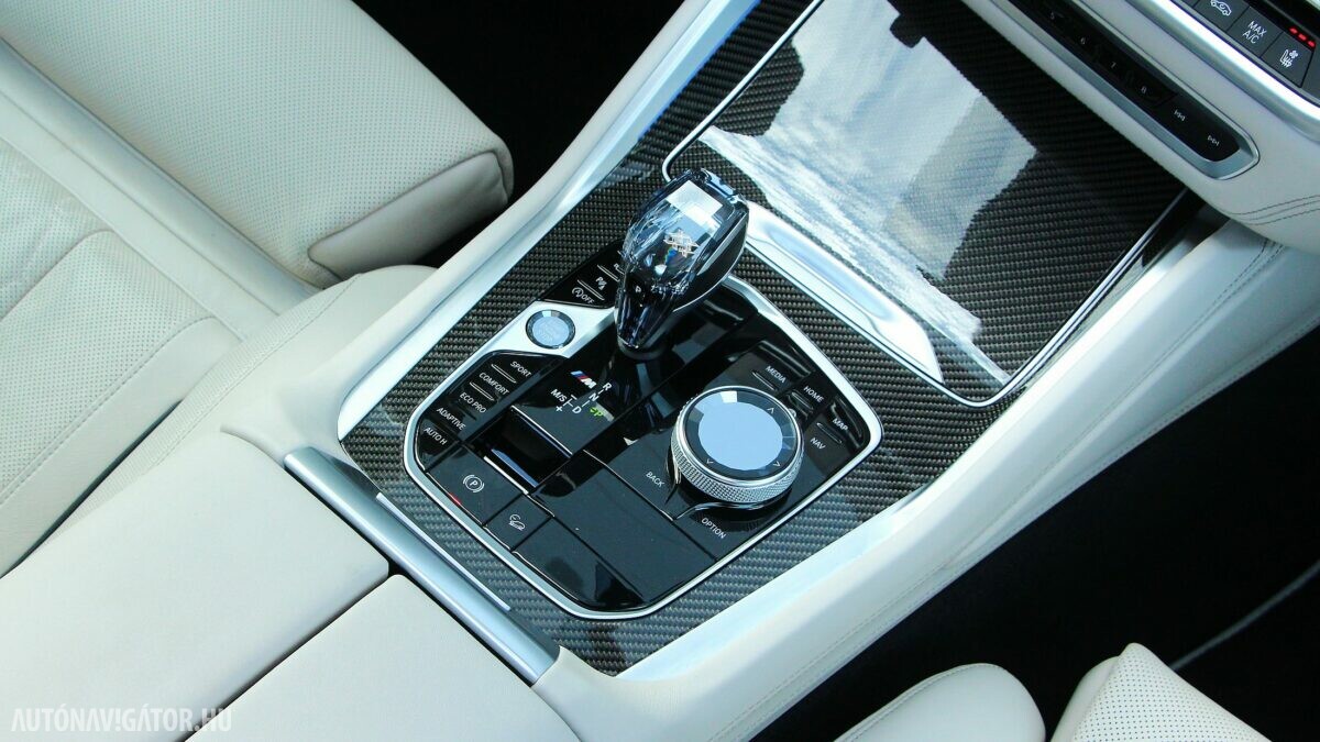 A válasz előtt azonban nézzünk gyorsan körül az utastérben, ahol további élmények várnak. Itt nem érheti szó a ház elejét, minden tekintetben igényes. A fehér Merino-bőrkárpittal (természetesen vaskos felár ellenében) borított fotelek egyszerűen fantasztikusak, bár a fekete farmernadrágom gyorsan új árnyalatot adott a vezetőülésnek. A műszerfal bőrbe burkolt, szépen csillognak a karbonmintás díszbetétek is, viszont a váltókarról eszembe jutott a szállóige, hogy nem elég valaminek lenni, annak is kell látszani. Ebben az esetben nem elég üvegnek lenni, annak is kellene látszani. Körülötte azonban minden egyértelmű és logikus elrendezésű, az iDrive kezelése továbbra is egyszerű, persze lehet tapizni a központi kijelzőt is. A nehézséget inkább a rengeteg funkció jelenti, de szerencsére tényleg könnyű navigálni közöttük. Érdemes még megemlítenem a fűthető és hűthető pohártartókat, amik nélkül persze lehet élni, de amúgy nem csak önkényes extra.