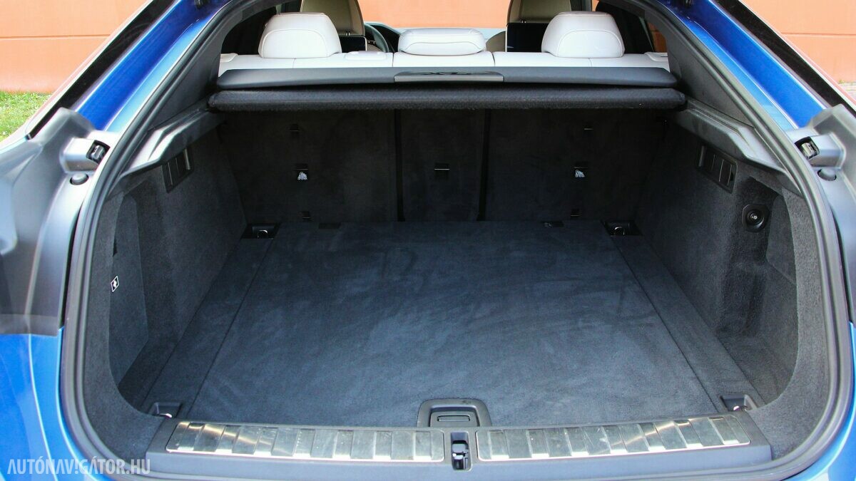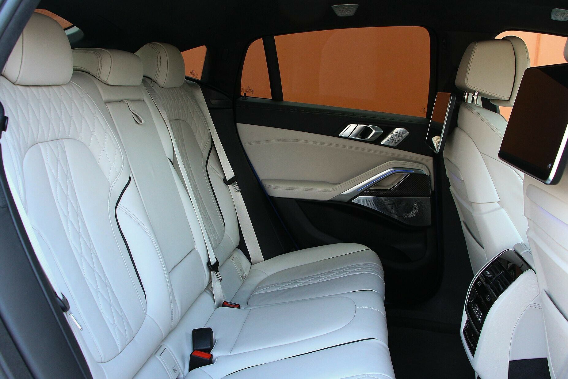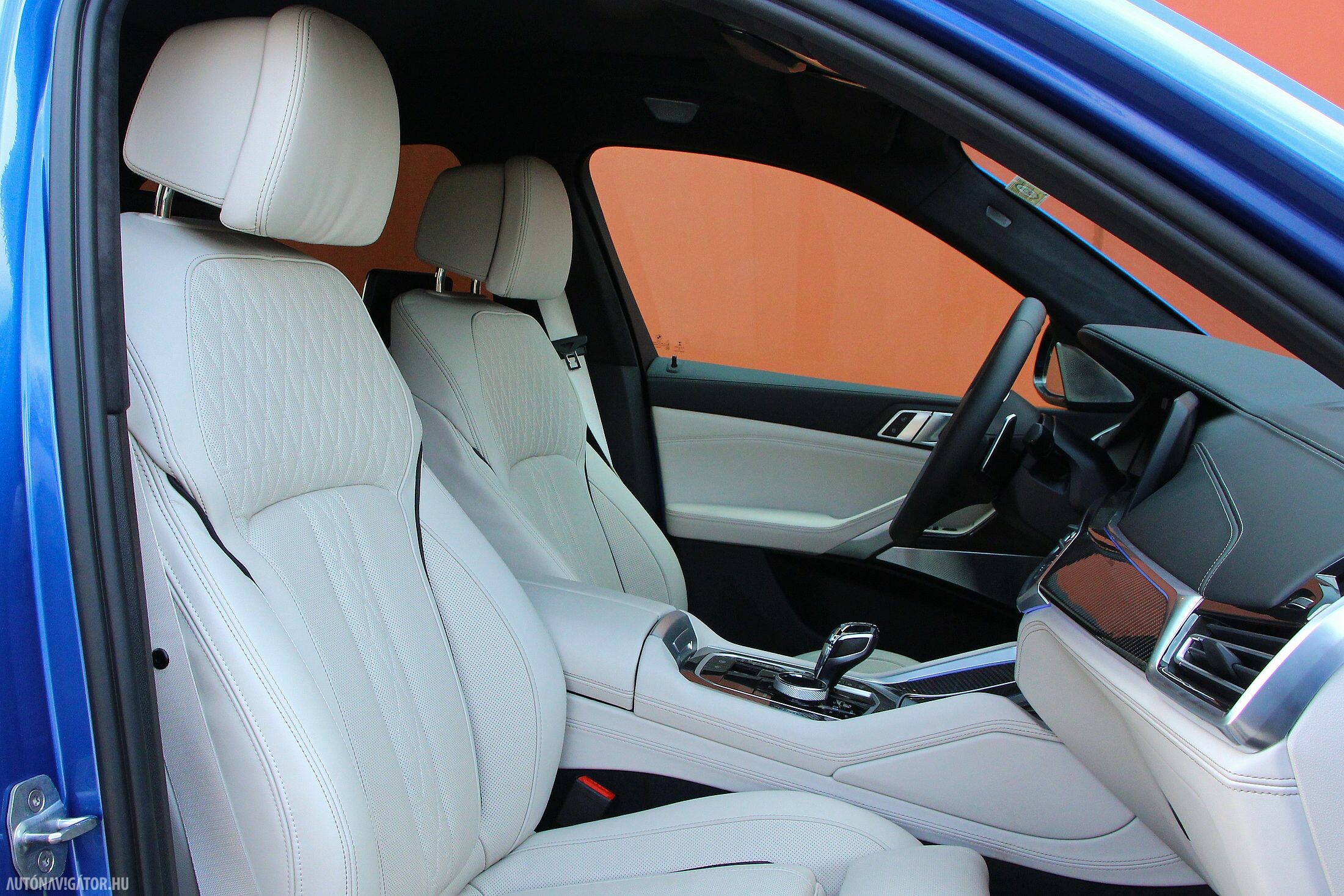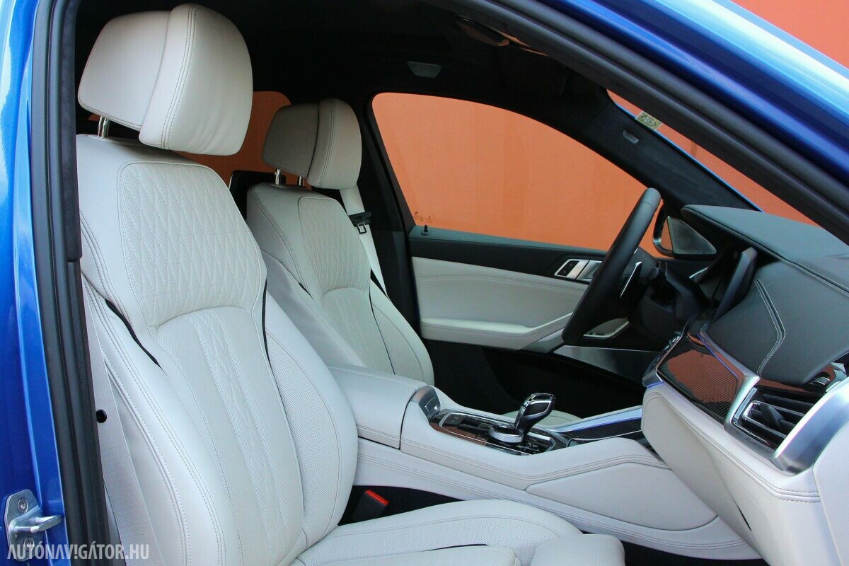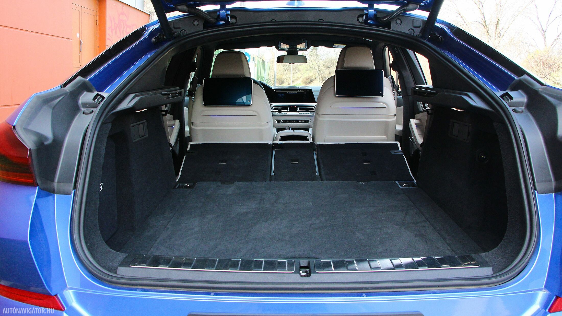 Hátul a meredeken lejtő tetővonal okán alakulhat ki enyhe klausztrofóbia, viszont az átlagos termetű felnőttek feje az X6-ban már nem súrolja az Alcantara burkolatú plafont, mint mondjuk az